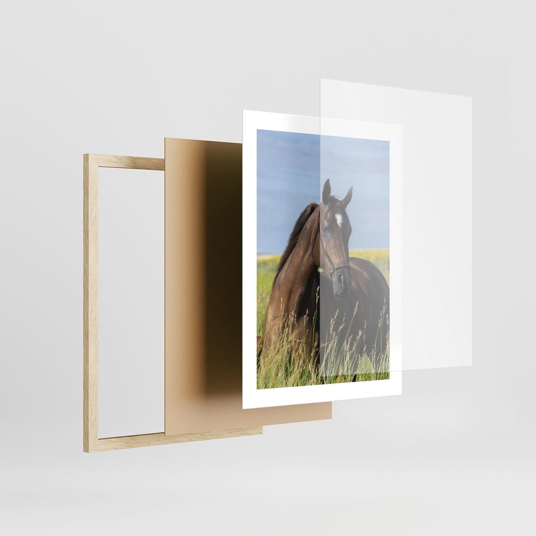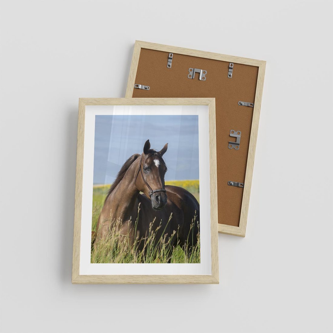 Plakat w ramie 30x40 - Siła i piękno natury - koń, łąka - rama drewno