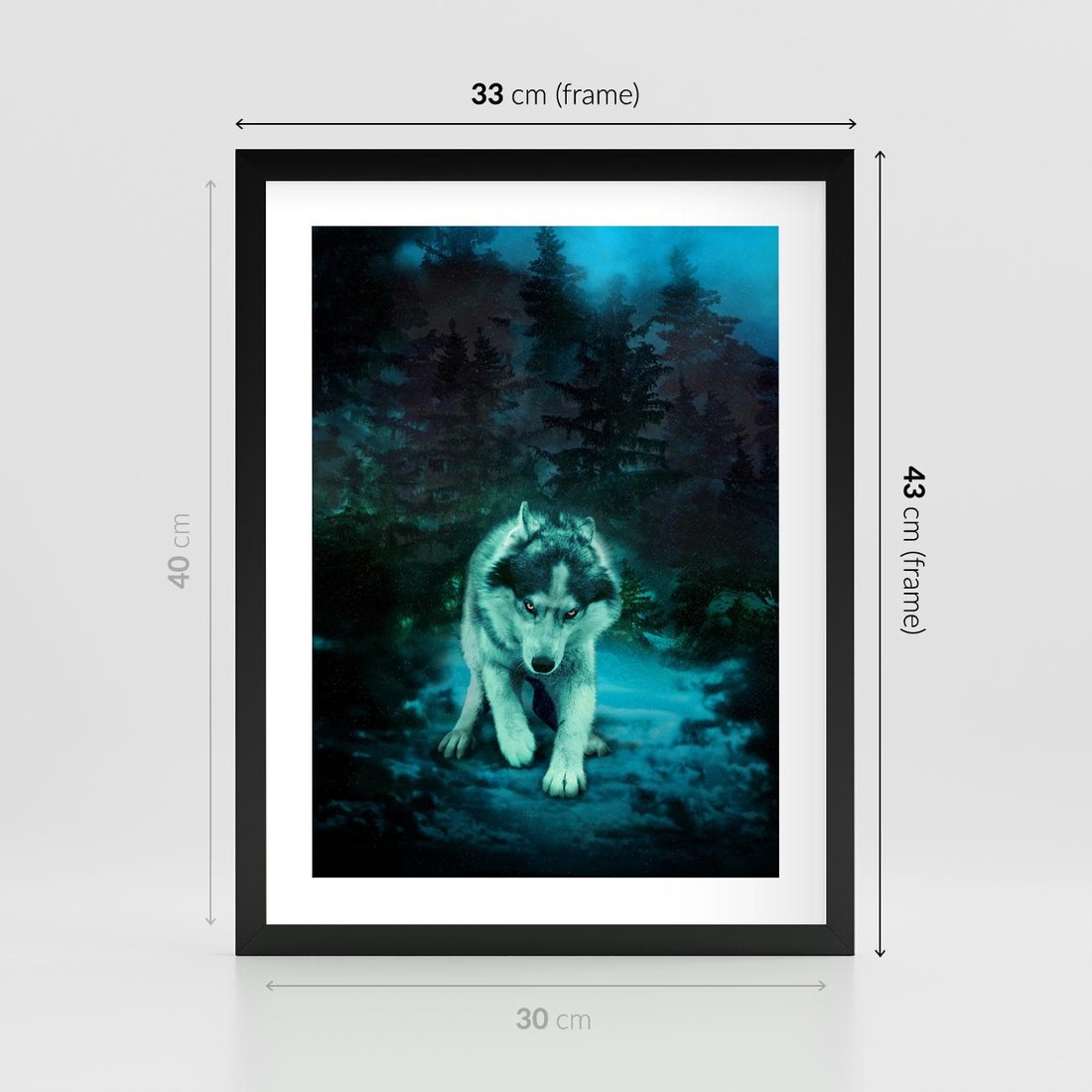 Plakat w ramie 30x40 - Siła i wdzięk natury - wilk, husky - rama czarna