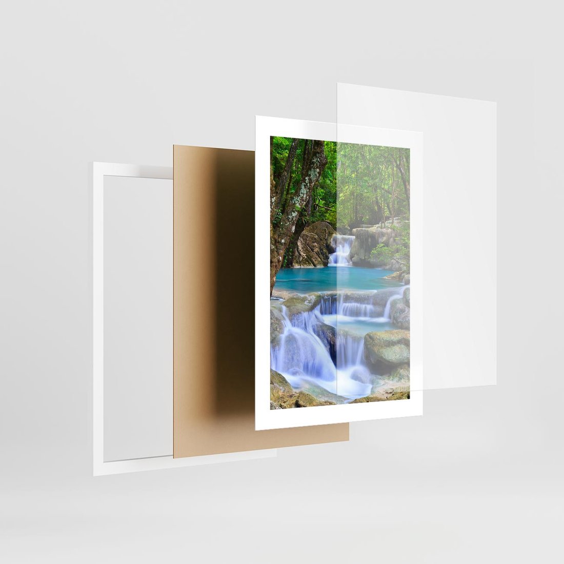 Plakat w ramie 30x40 - Siła Rzeki i Urok Wodospadu - rzeka, wodospad - rama biała