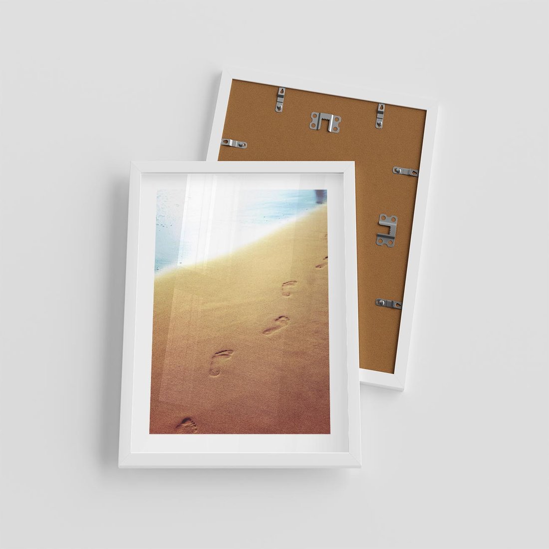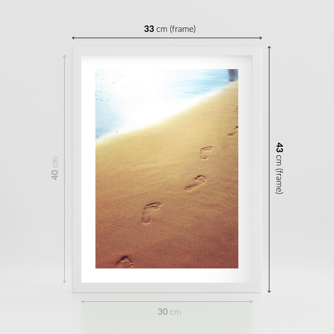 Plakat w ramie 30x40 - Ślad Przygody - ślady, stóp - rama biała