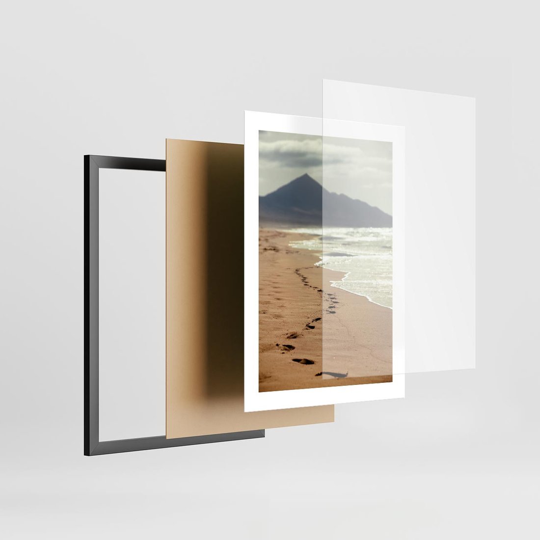 - Plakat w ramie 30x40 - Ślady stóp na plaży
