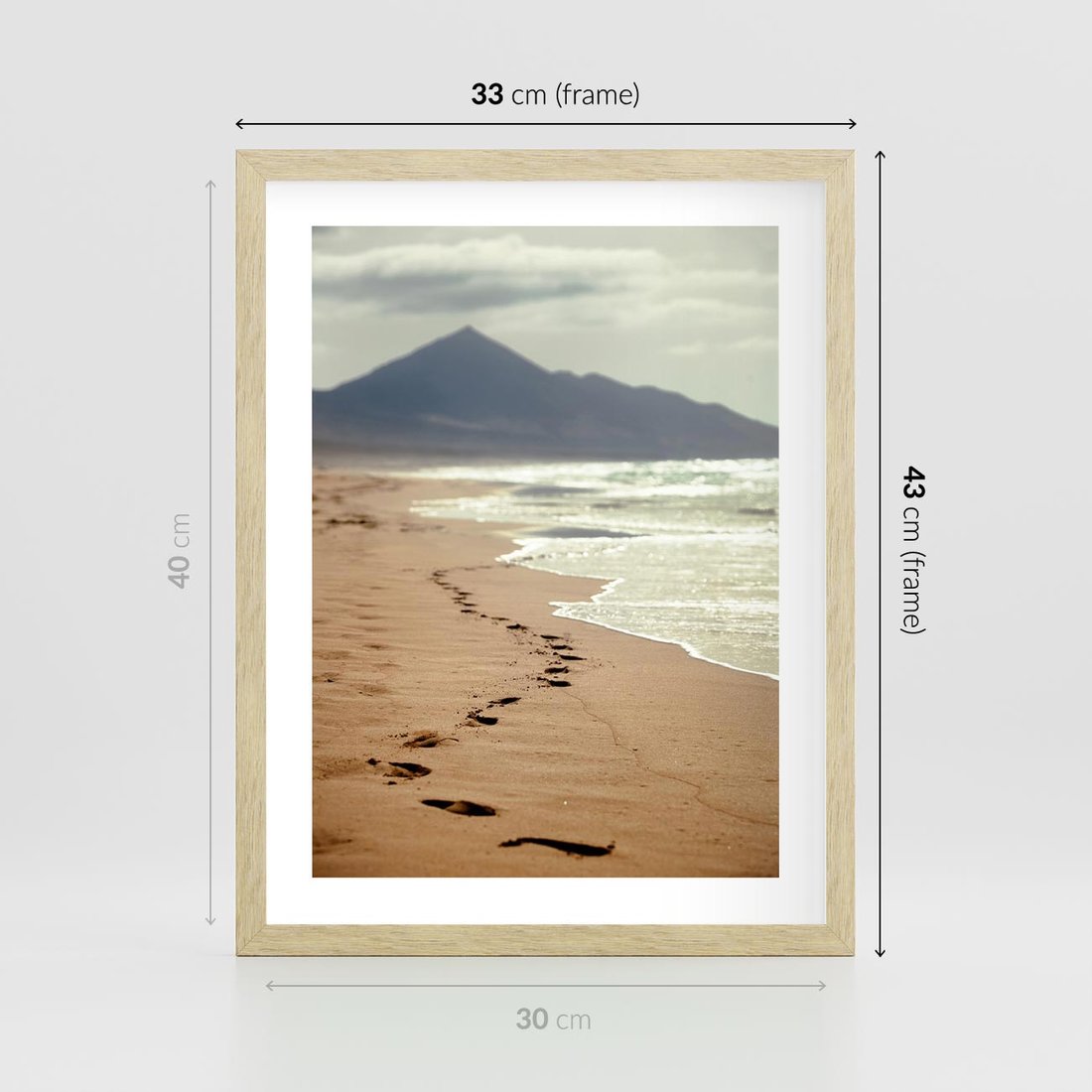 - Plakat w ramie 30x40 - Ślady stóp na plaży