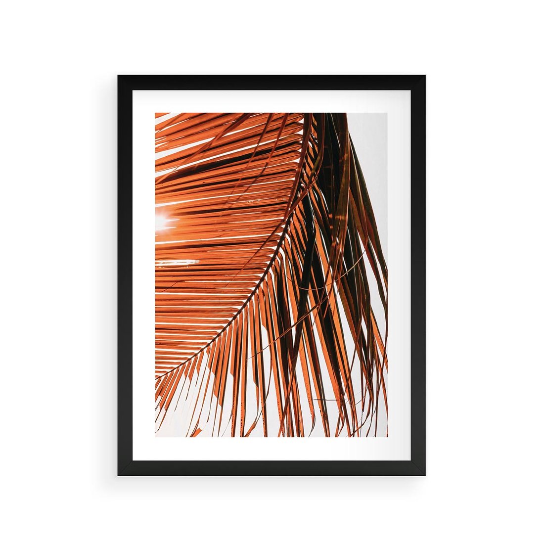Plakat w ramie 30x40 - Słońce na Palmie - palma, promienie słońca - rama czarna
