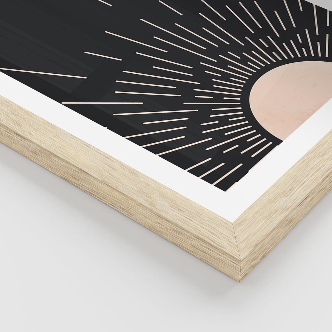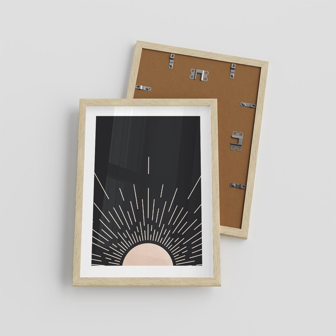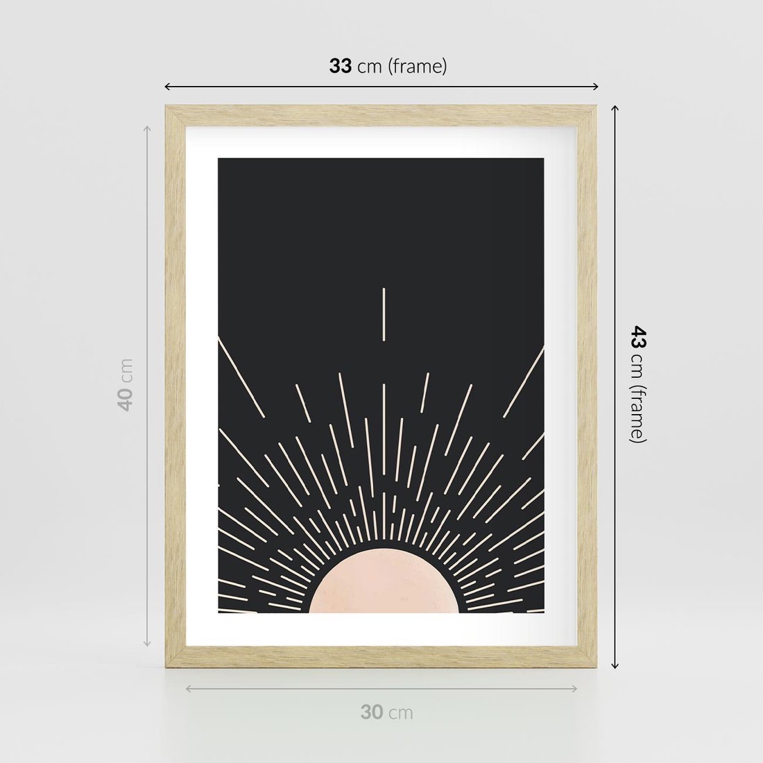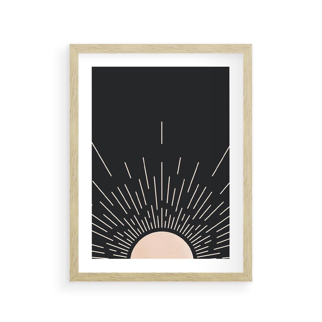 Plakat w ramie 30x40 - Słoneczny Portret Duszy - boho czarne słońce, nowoczesna grafika - rama drewno