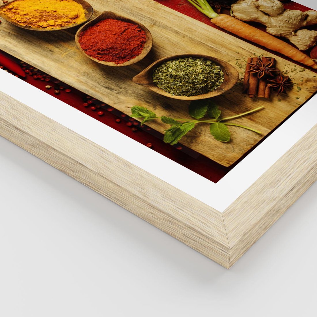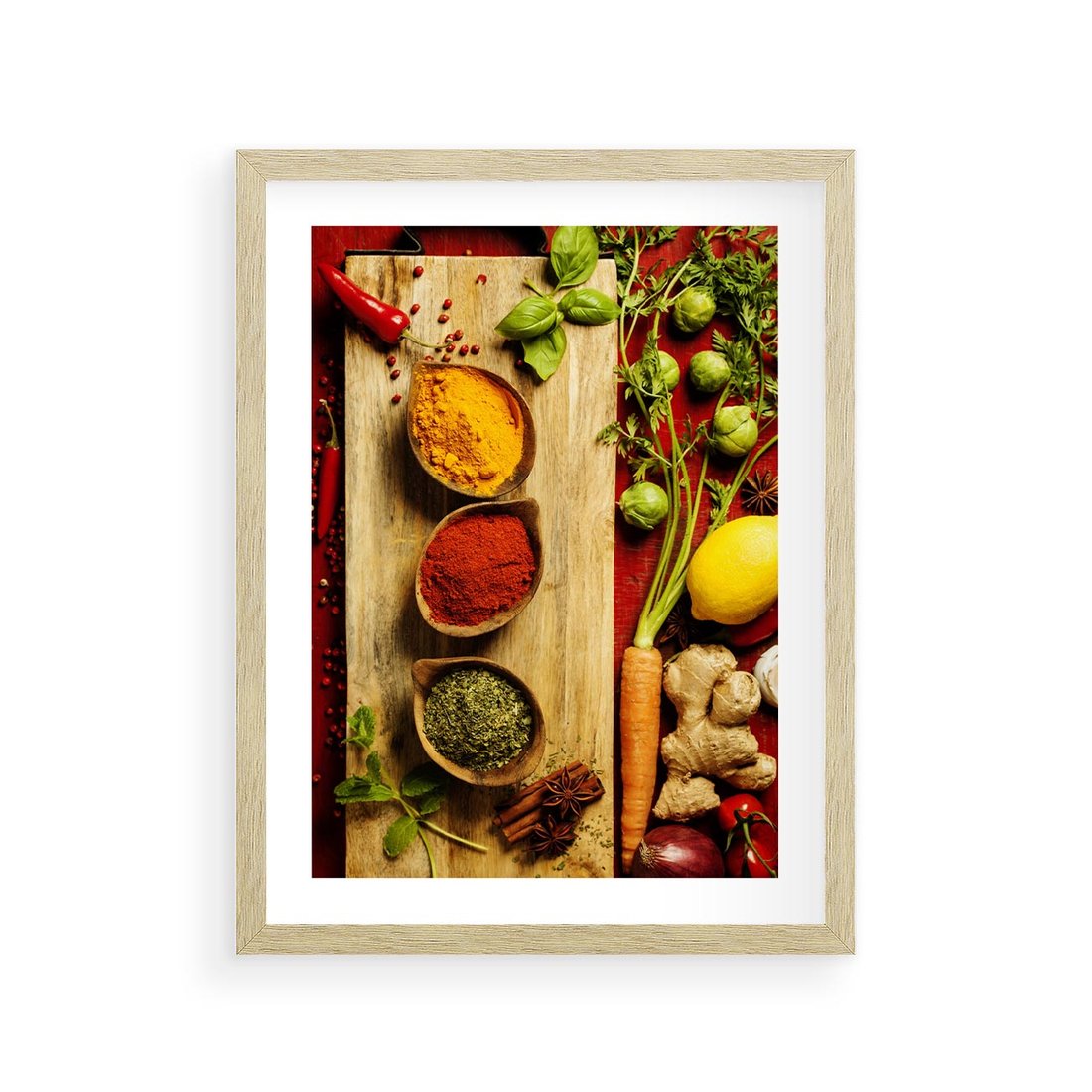 Ten apetyczny obraz z różnymi przyprawami wprowadzi do Twojej kuchni smakowy zmysł i kulinarną kreatywność. Odkryj różnorodność aromatów i dodaj wyrazistości do swojej kuchni.