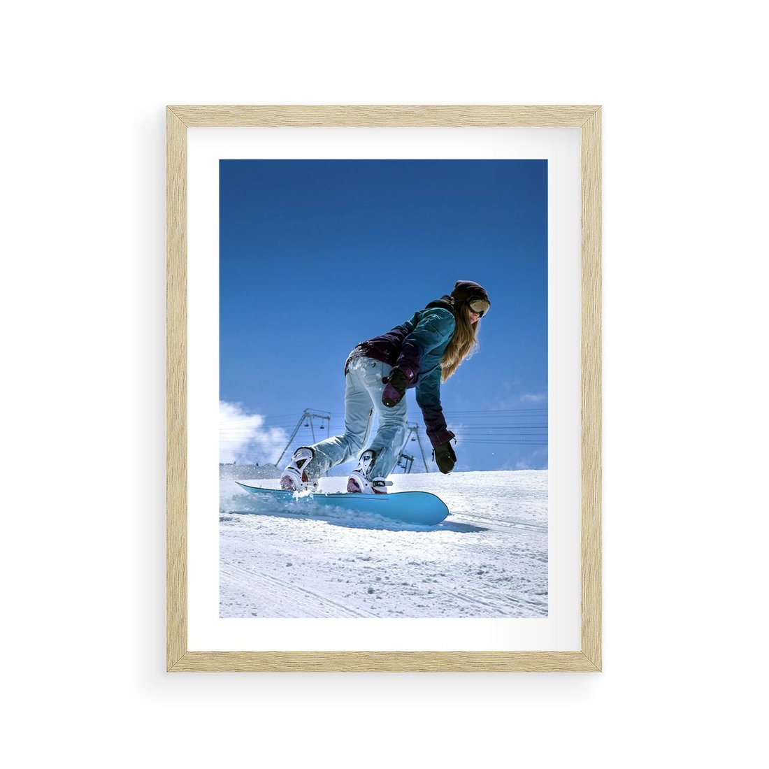 Plakat w ramie 30x40 - Snowboard na zimowych zboczach - snowboard, zima - rama drewno
