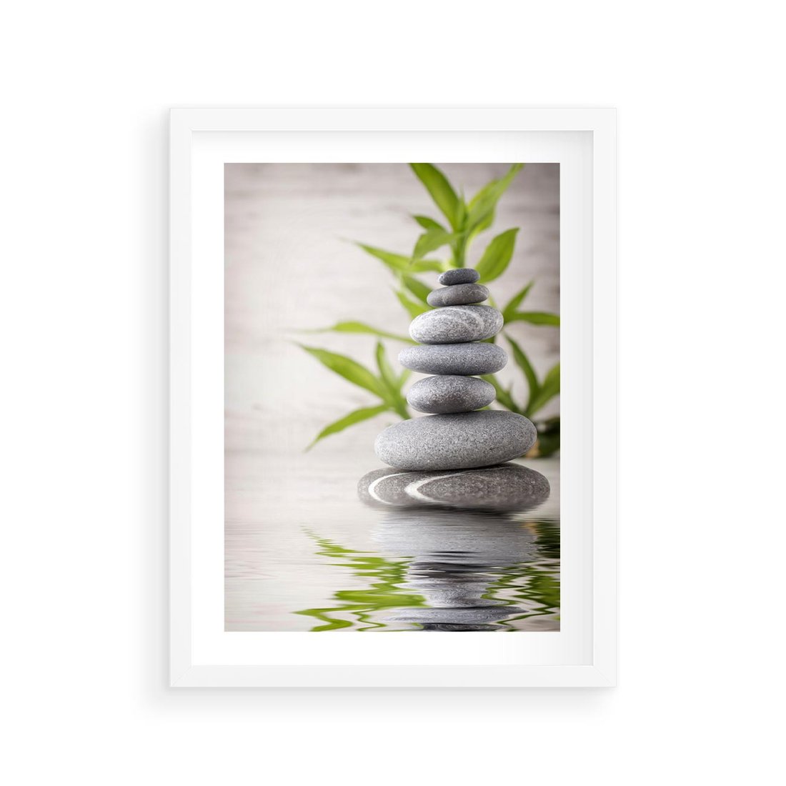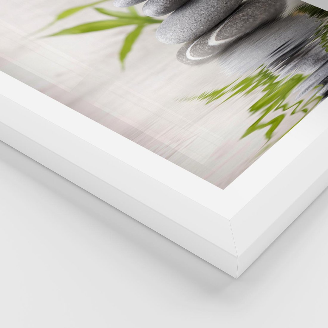 Plakat w ramie 30x40 - Spa kamienie: naturalne piękno - spa, kamienie - rama biała