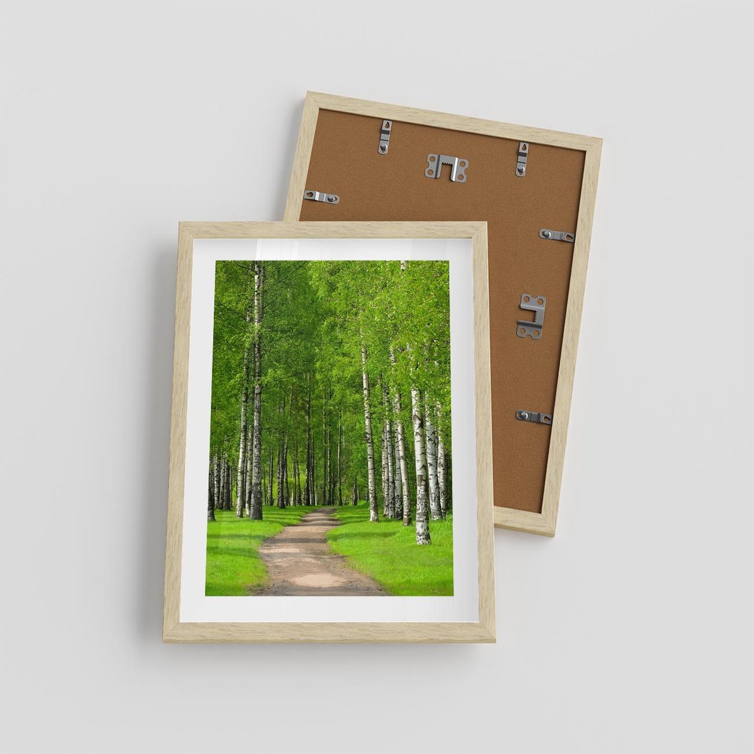 Plakat w ramie 30x40 - Spacer Ścieżką w Urokliwym Lesie - las, ścieżka - rama drewno