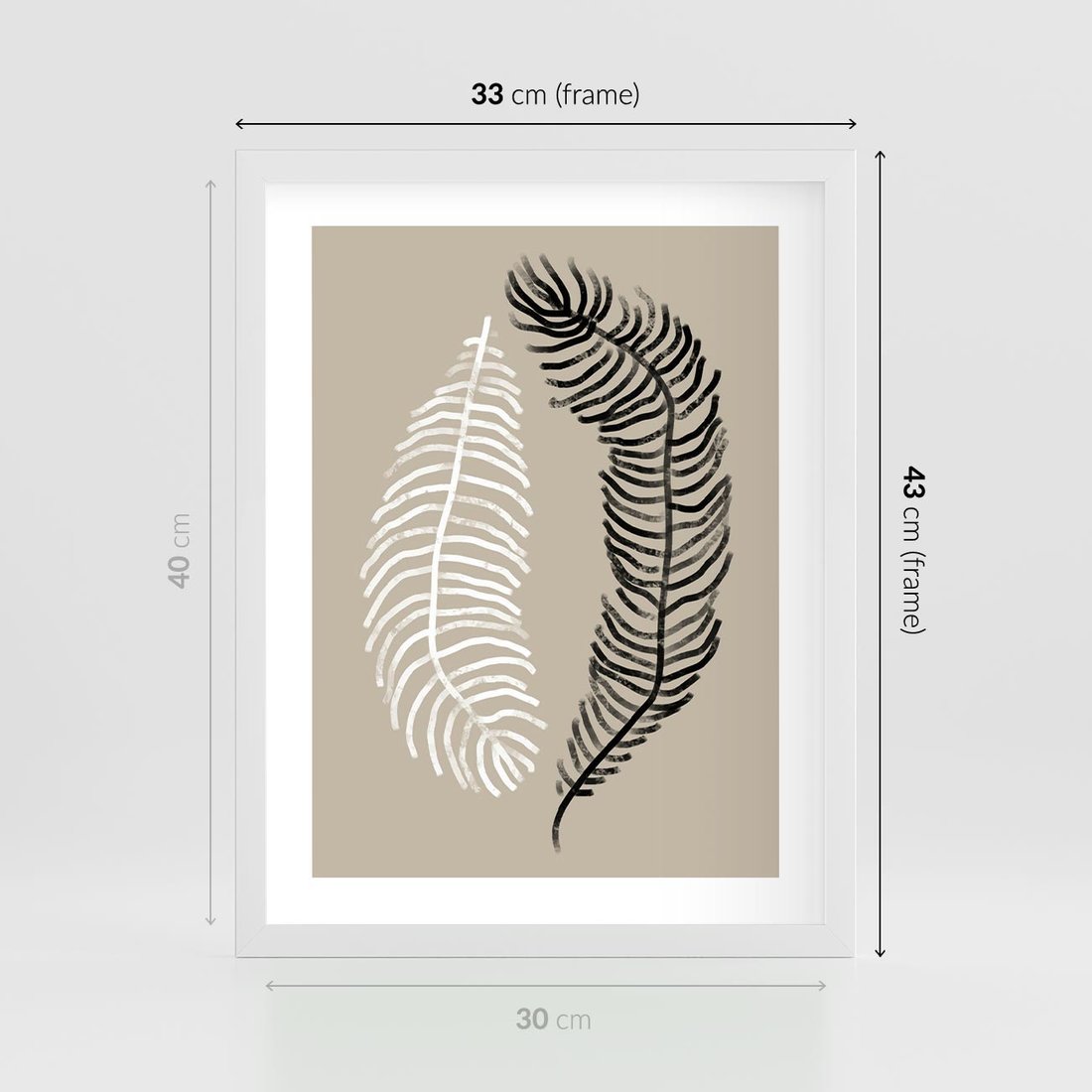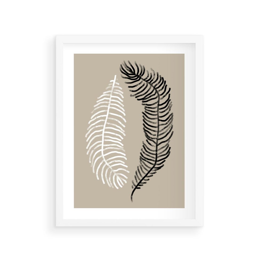 Plakat w ramie 30x40 - Spleciona Harmonia - sztuka nowoczesna, białe i czarne pióro - rama biała
