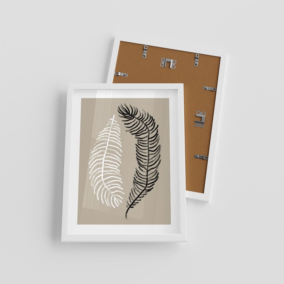 Nasza nowoczesna sztuka to minimalistyczna kompozycja białego i czarnego pióra na spokojnym beżowym tle. To dzieło wydobywa piękno prostoty, gdzie subtelne kontrasty i delikatne linie tworzą wrażenie równowagi i elegancji. Ten obraz przyniesie do Twojej przestrzeni spokój i harmonię, oddając hołd estetyce, która podkreśla moc piękna w prostych detalach.