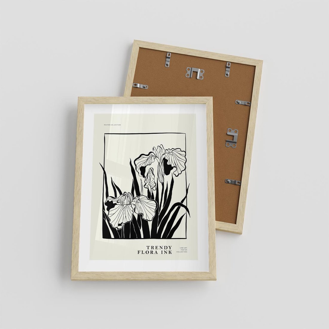 Złączenie kwiatów i typografii w minimalistycznym stylu, uwydatnione delikatnym beżowym akcentem. Te elementy tworzą spokojną i harmonijną równowagę. To minimalistyczne dzieło sztuki z roślinnymi motywami idealnie wpisuje się w różne wnętrza, wnosząc subtelny akcent natury i estetyki w postaci prostej i eleganckiej formy.