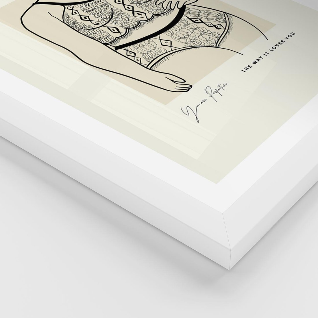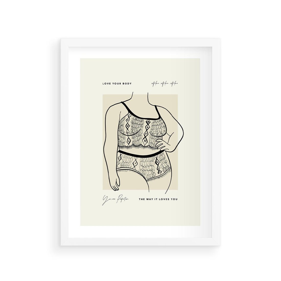 Ten plakat to hołd dla kobiecej siły i piękna. Delikatny rysunek kobiety w bieliźnie, wzbogacony subtelnie dobraną typografią, tworzy wyjątkową kompozycję, oddającą piękno i pewność siebie.