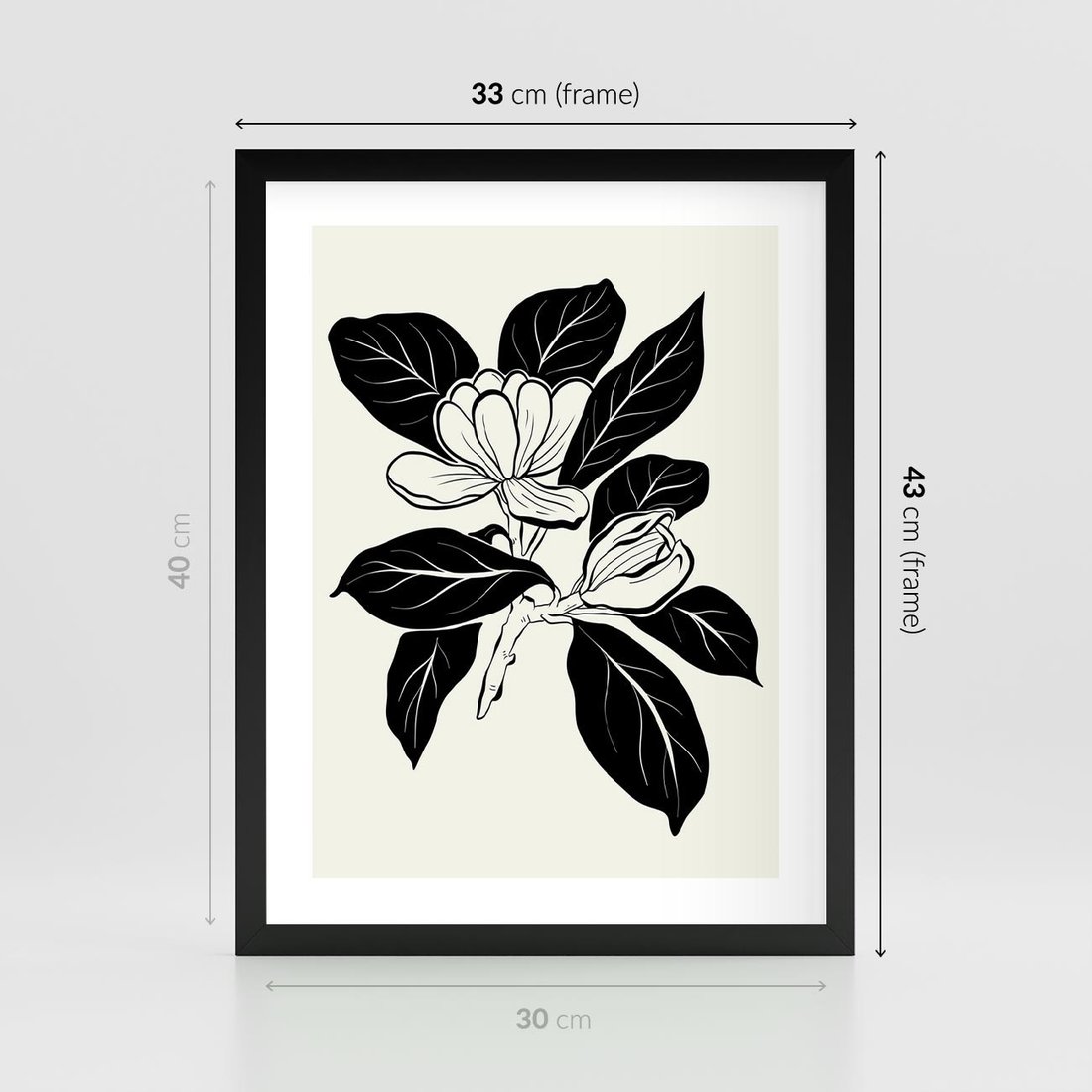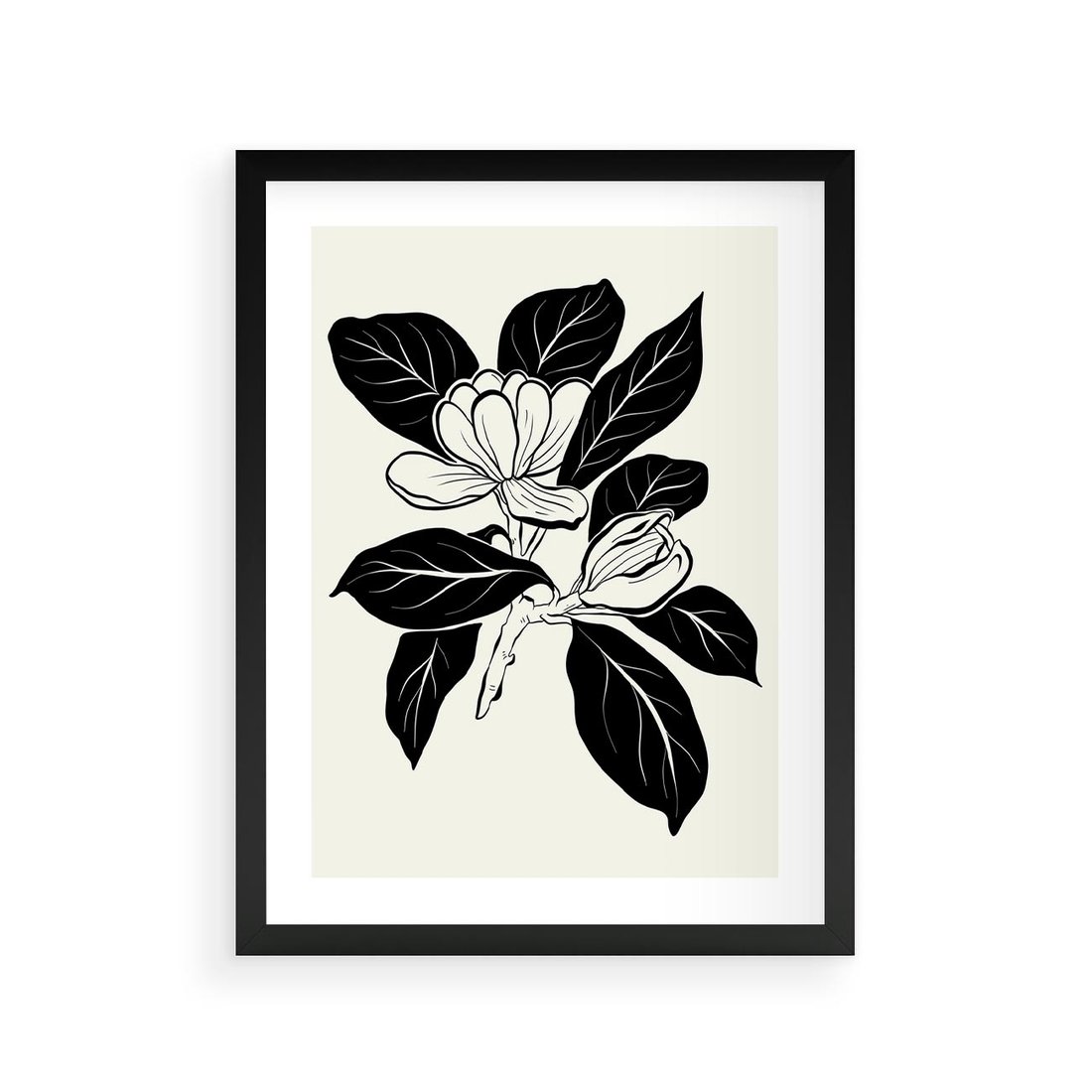 Plakat w ramie 30x40 - Spojrzenie w kształty kwiatów - kwiaty magnolii, minimalizm - rama czarna