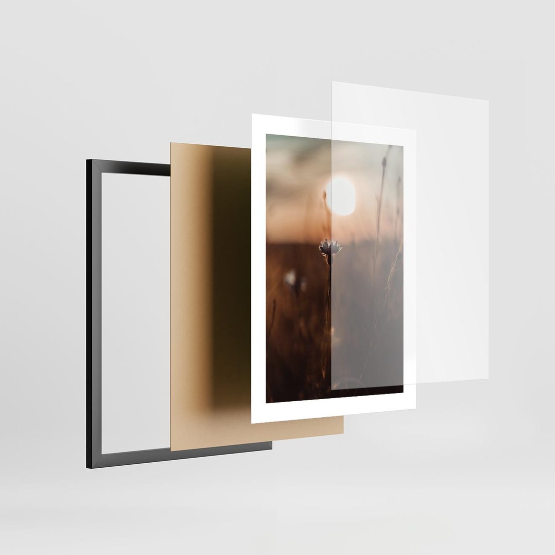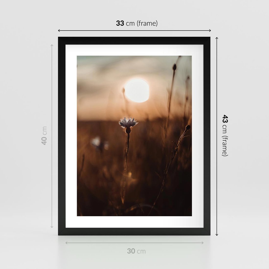 - Plakat w ramie 30x40 - Spokój łąki pod zachodem słońca