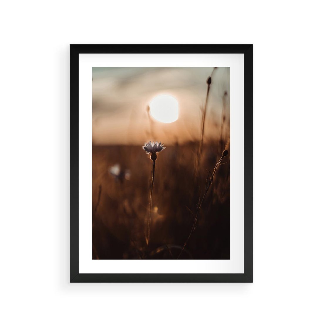 Plakat w ramie 30x40 - Spokój łąki pod zachodem słońca - zachód, słońca - rama czarna