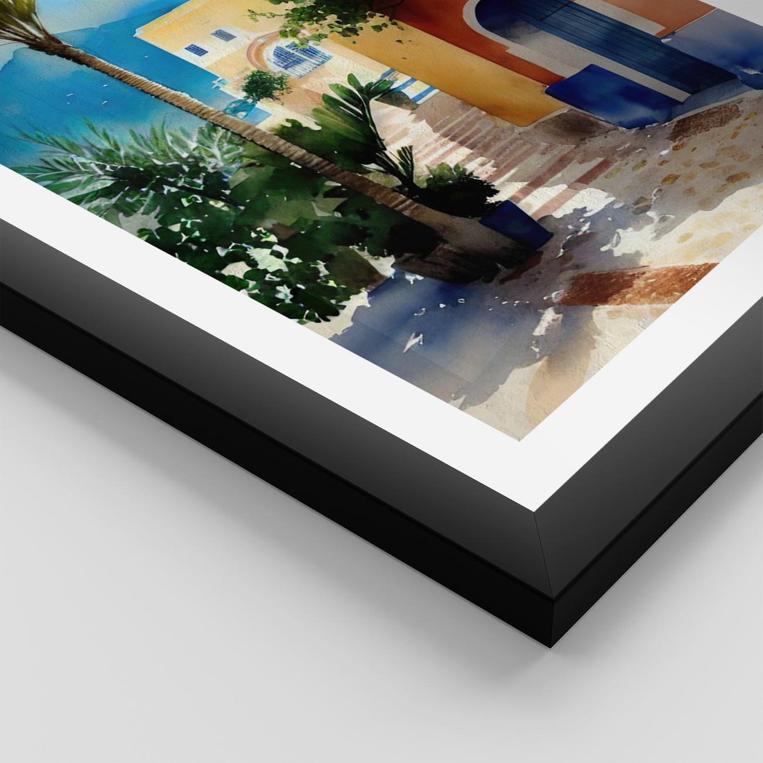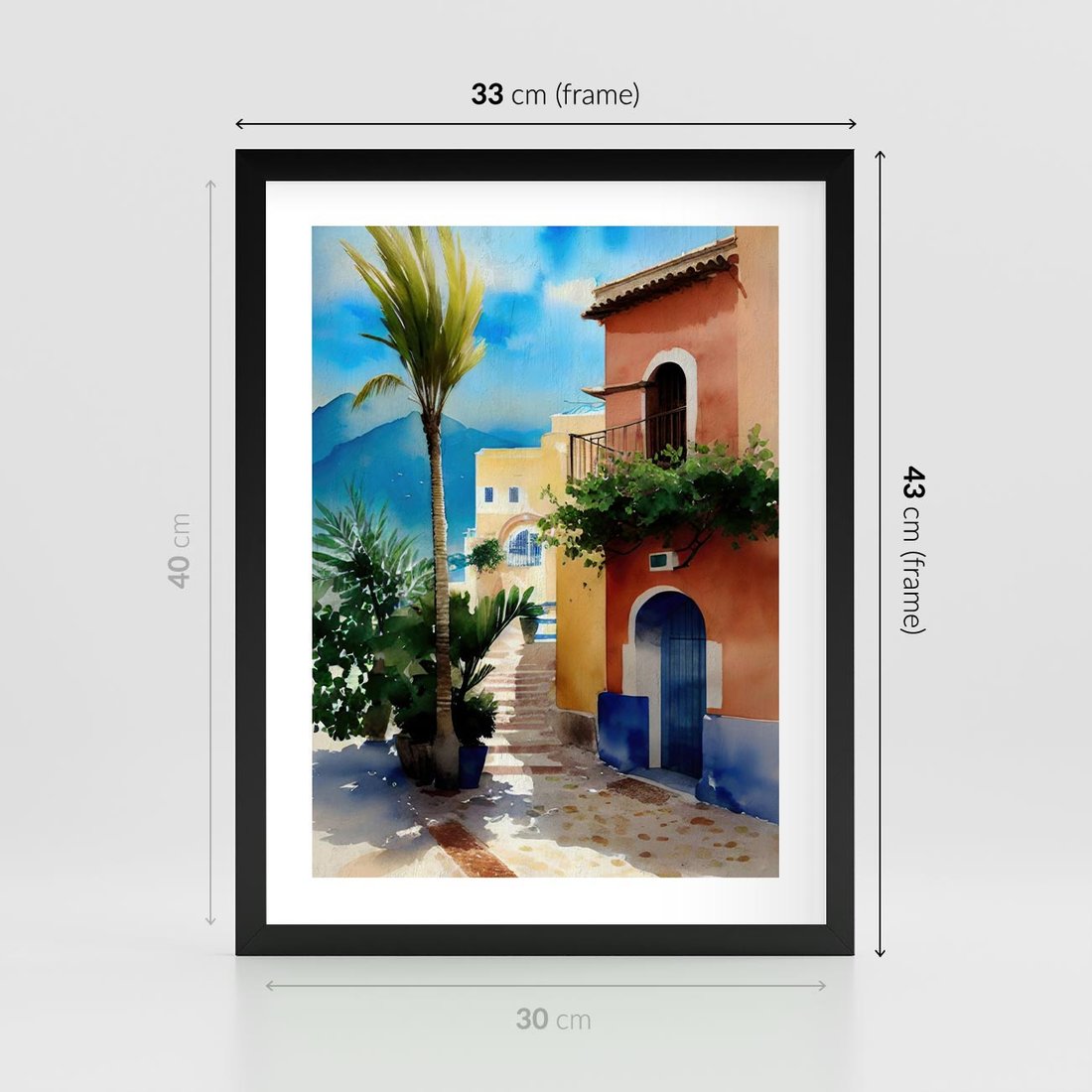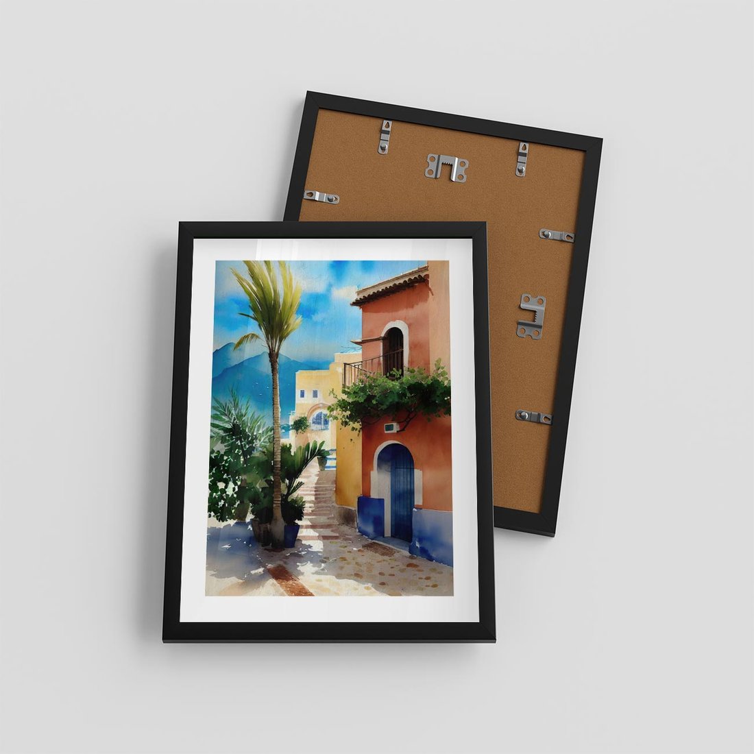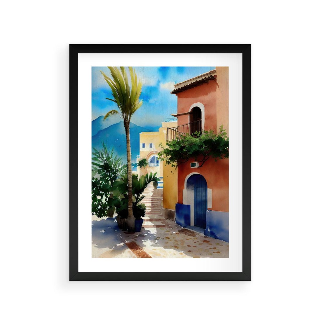 Plakat w ramie 30x40 - Spokój Miasta nad Morzem - akwarela, sródziemnomorski klimat - rama czarna