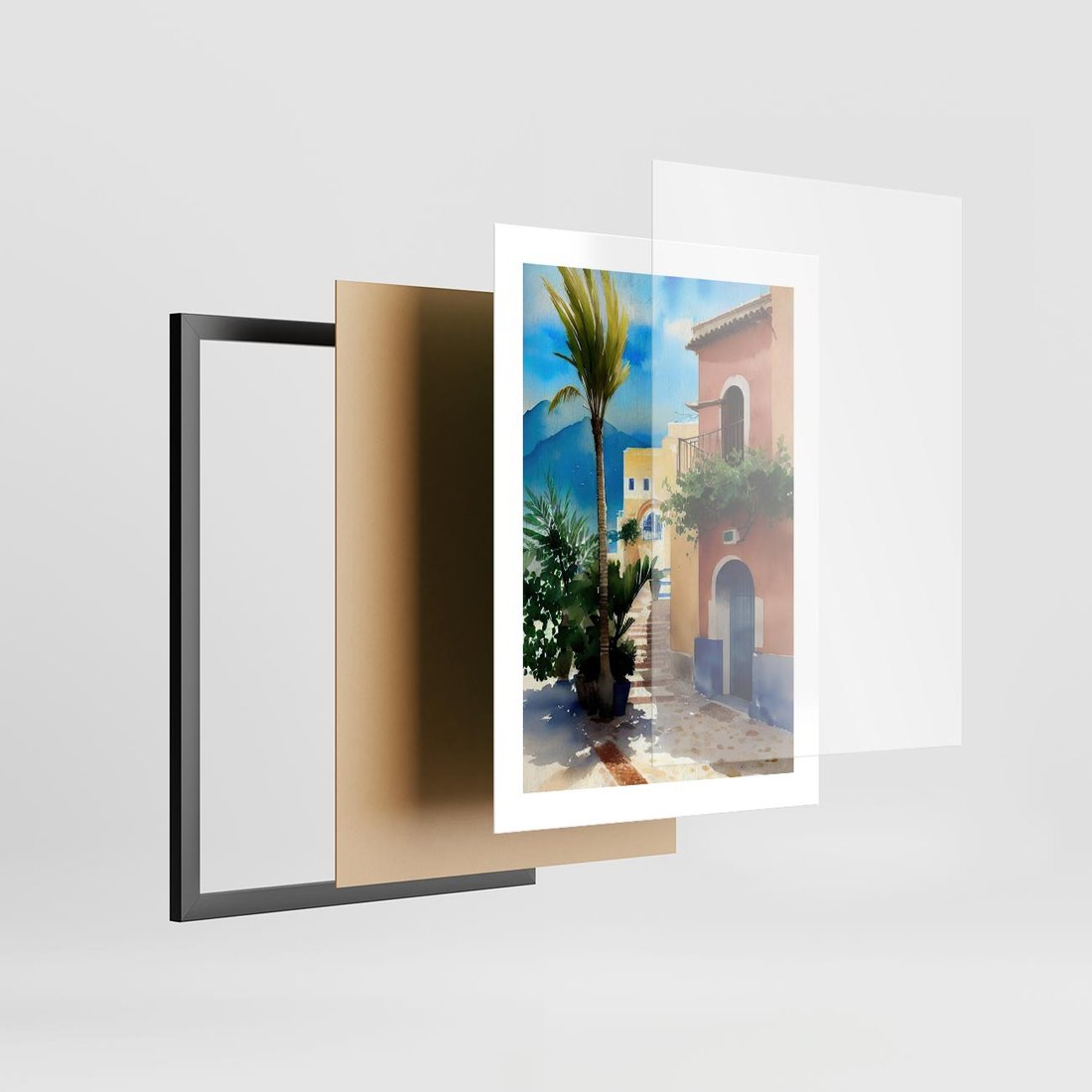 Ta akwarela przenosi nas w urokliwy śródziemnomorski klimat. Na obrazie widzimy urokliwą uliczkę, otoczoną pięknymi budynkami. Palmy dodają temu pejzażowi charakterystycznego tropikalnego akcentu. Technika akwareli nadaje obrazowi delikatność i miękkość, podkreślając przyjemną atmosferę tego miejsca. To dzieło sztuki doskonale oddaje urok i spokój typowy dla miast i miejscowości nad Morzem Śródziemnym. Może być idealnym dodatkiem do wnętrza, które pragnie przenieść atmosferę tego regionu do swojego otoczenia.
