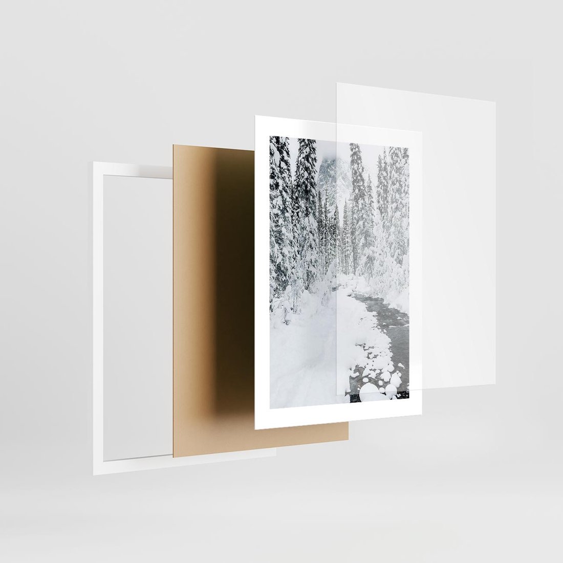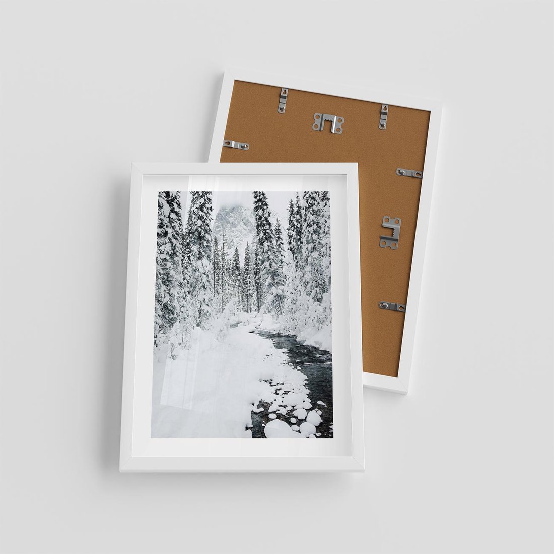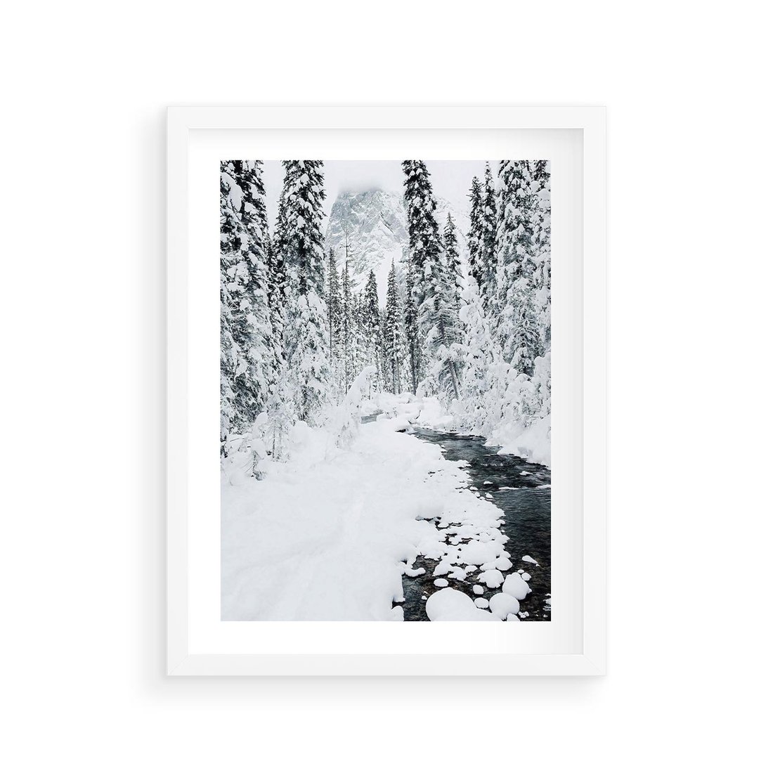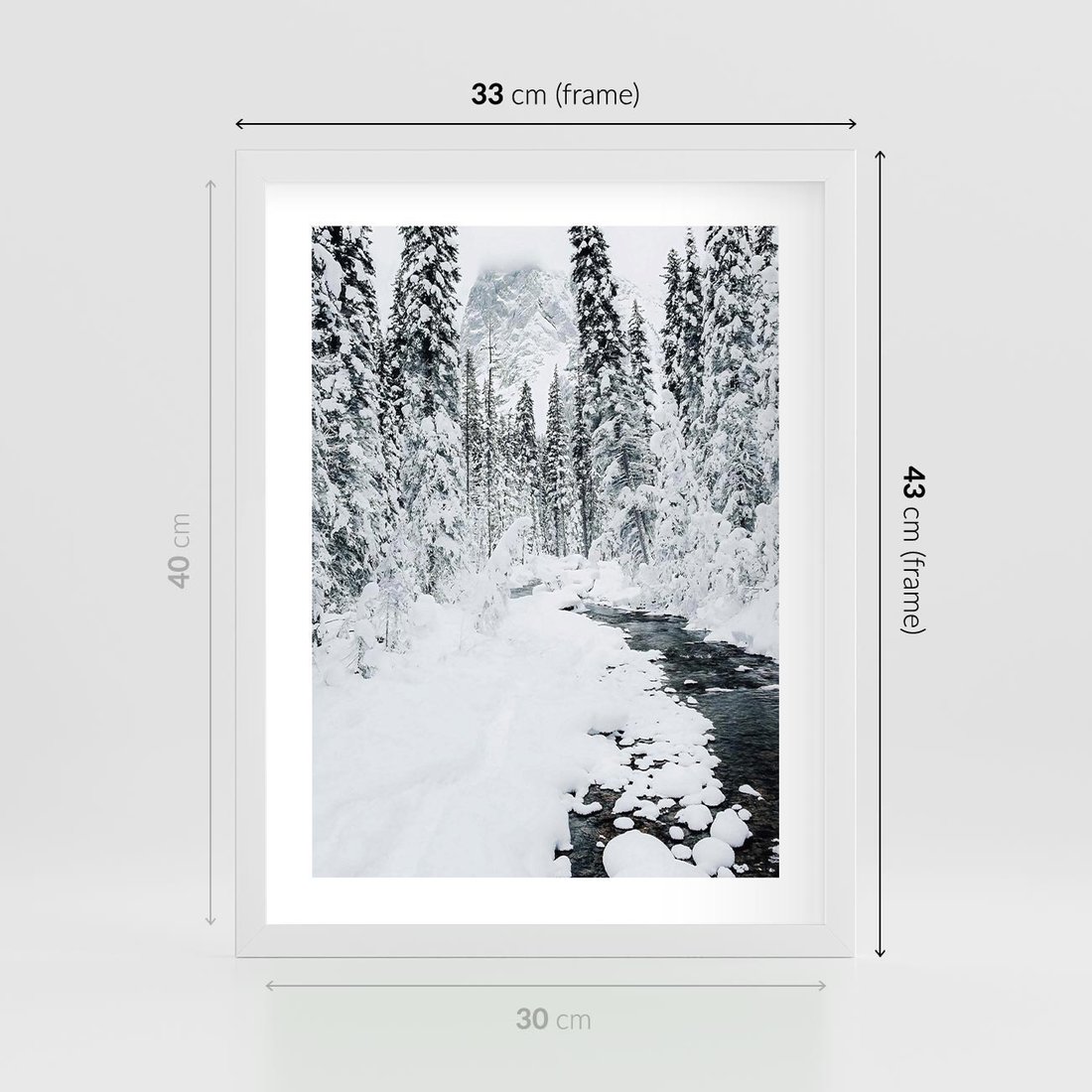 Plakat w ramie 30x40 - Spokój Zimowego Lasu w Górach - zima w lesie, w górach - rama biała