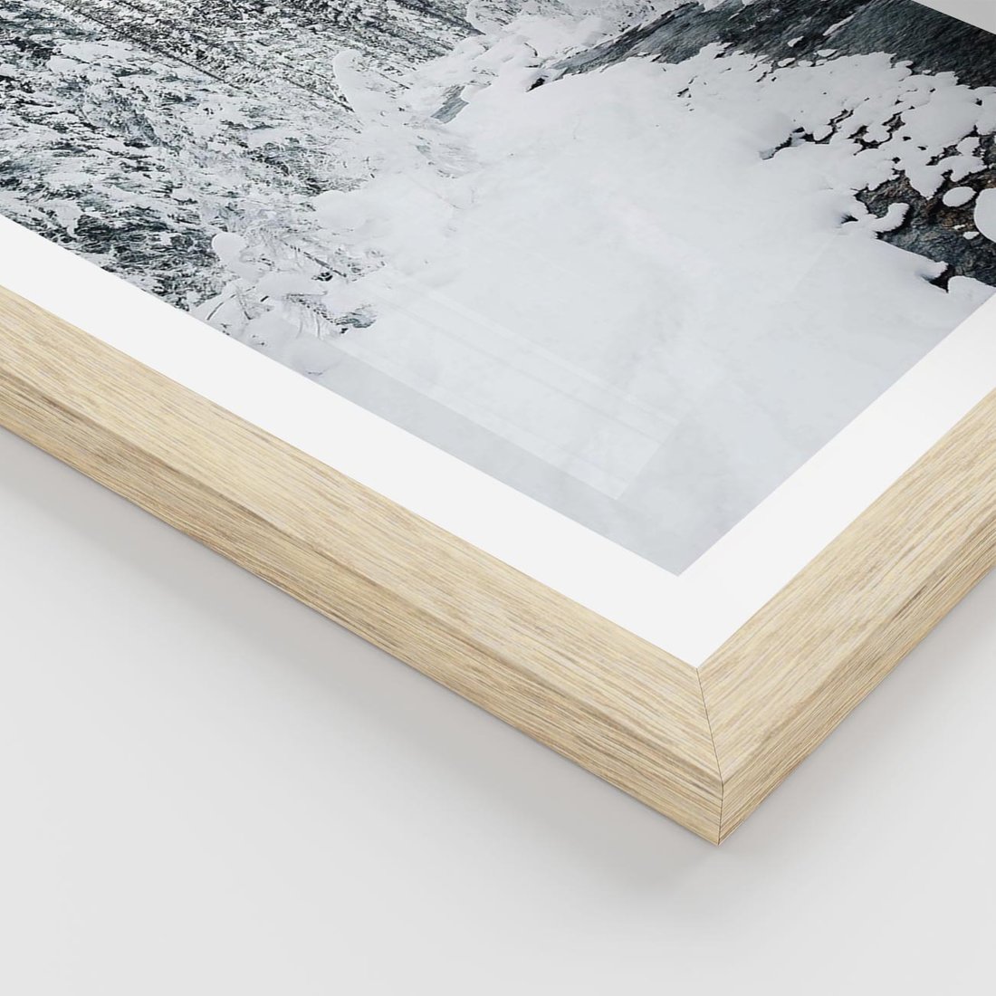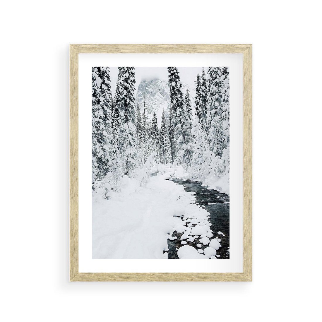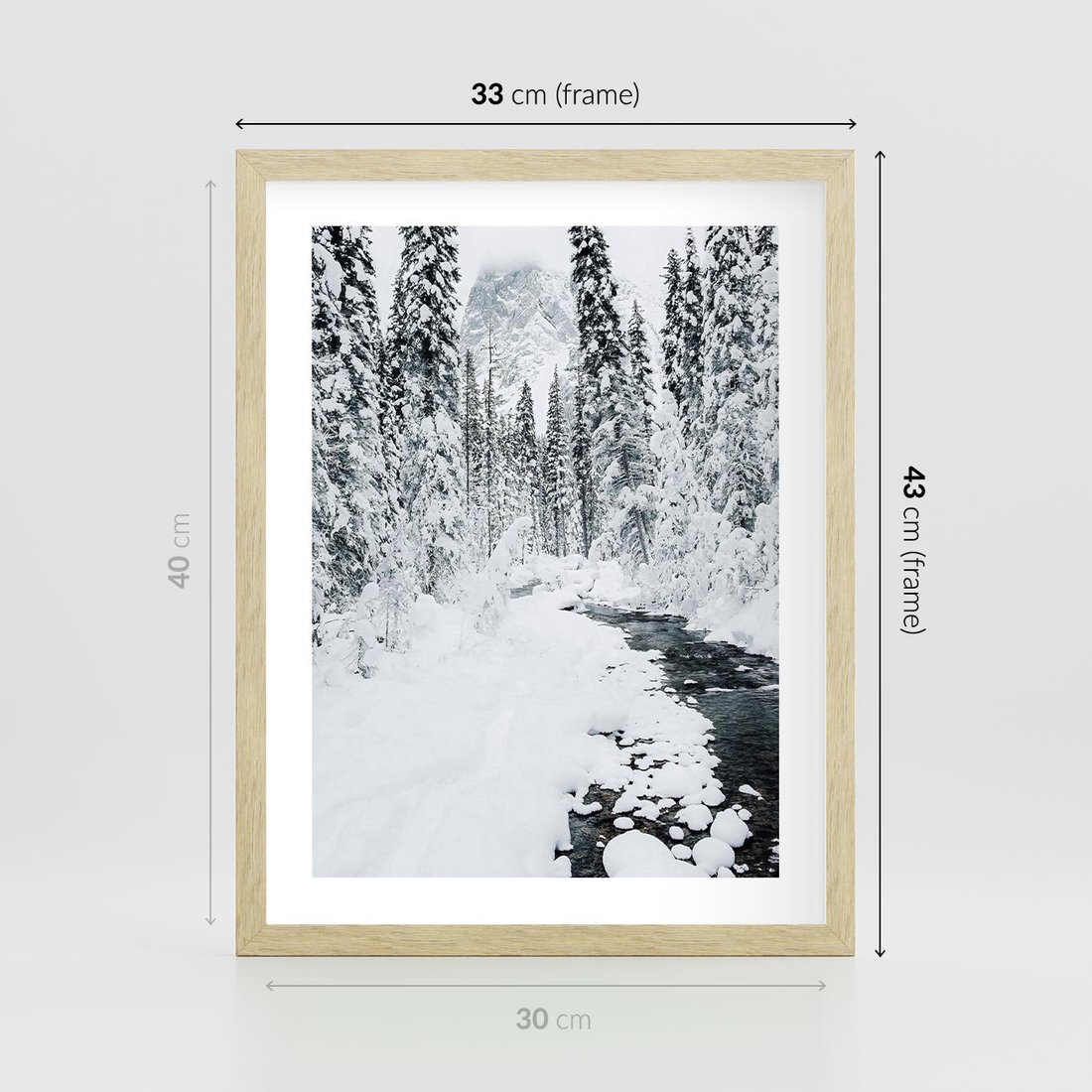 Plakat w ramie 30x40 - Spokój Zimowego Lasu w Górach - zima w lesie, w górach - rama drewno