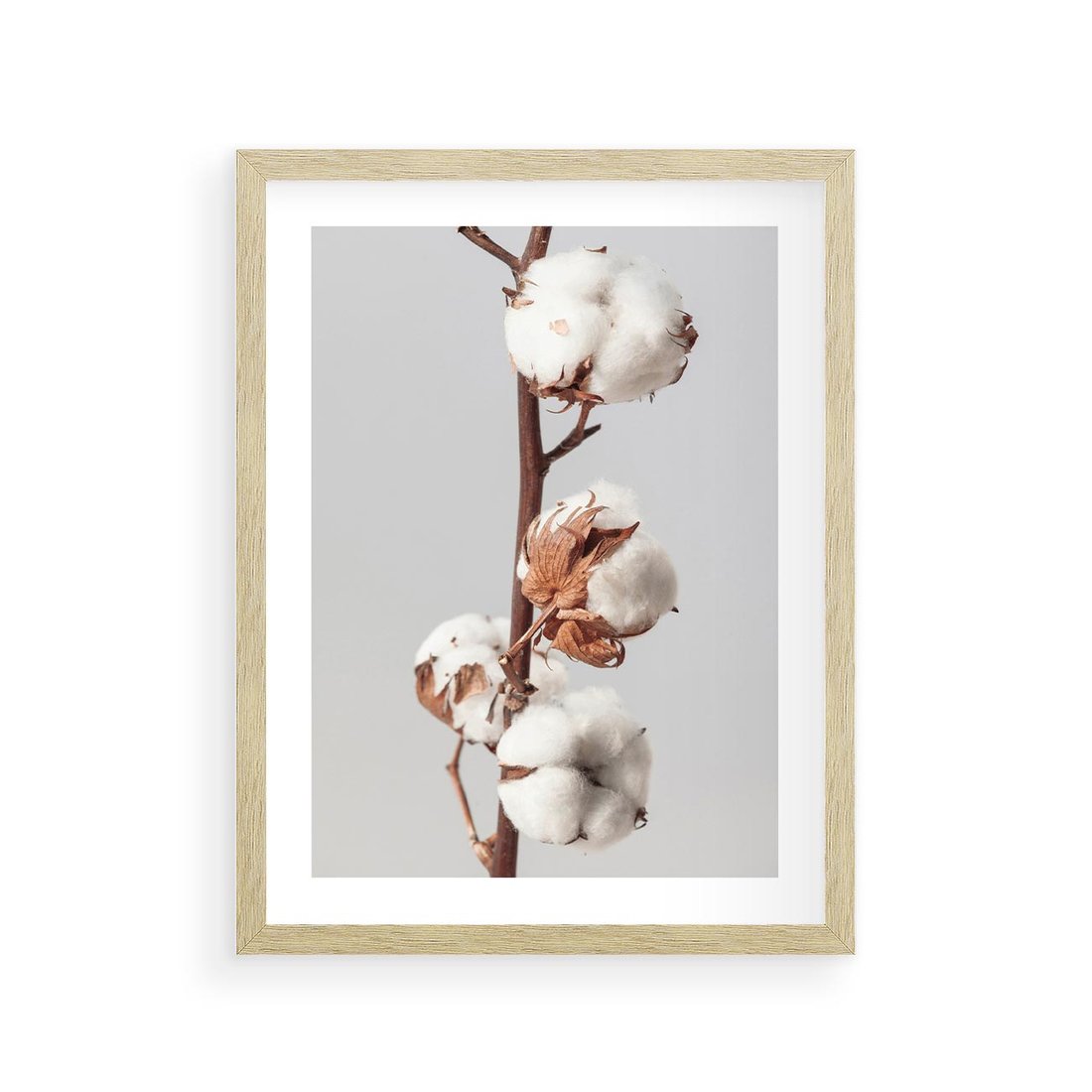 Plakat w ramie 30x40 - Spokojna Gałązka Bawełny - gałązka bawełny, prosta spokojna fotografia - rama drewno
