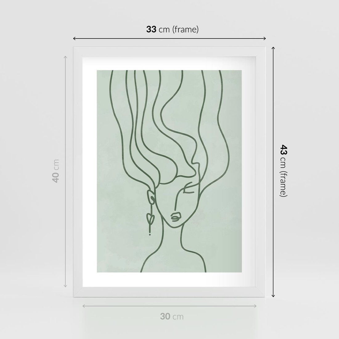 Plakat w ramie 30x40 - Spokojne Objęcia Natury - abstrakcja, zielony szkic - rama biała