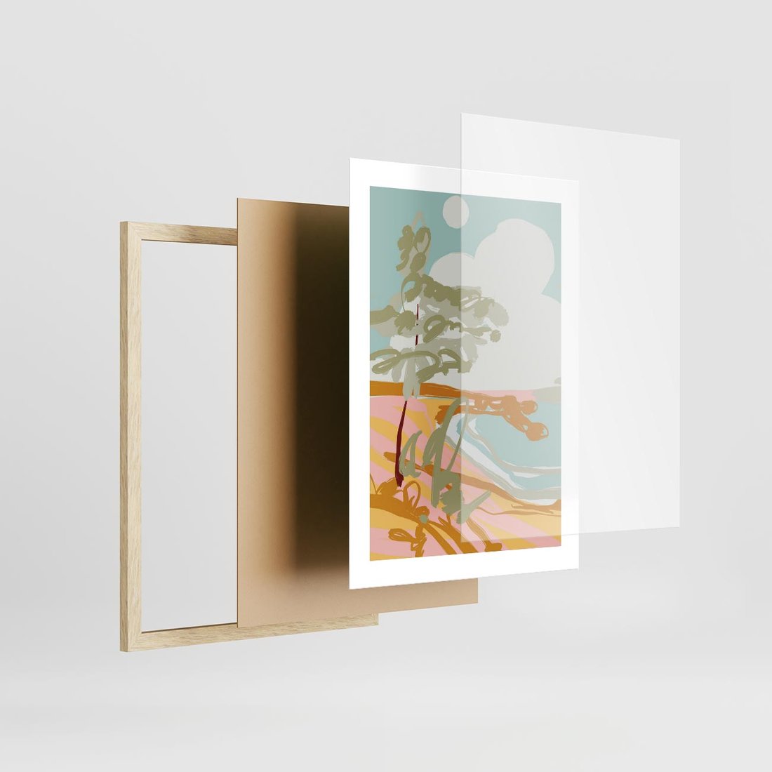 Ten nowoczesny plakat prezentuje spokojny pastelowy krajobraz z drzewem nad jeziorem, emanujący spokojem i harmonią. To dzieło sztuki wnosi do Twojej przestrzeni uczucie spokoju i relaksu, jednocześnie zachowując nowoczesny charakter. Idealny wybór, aby stworzyć atmosferę spokoju w Twoim wnętrzu.