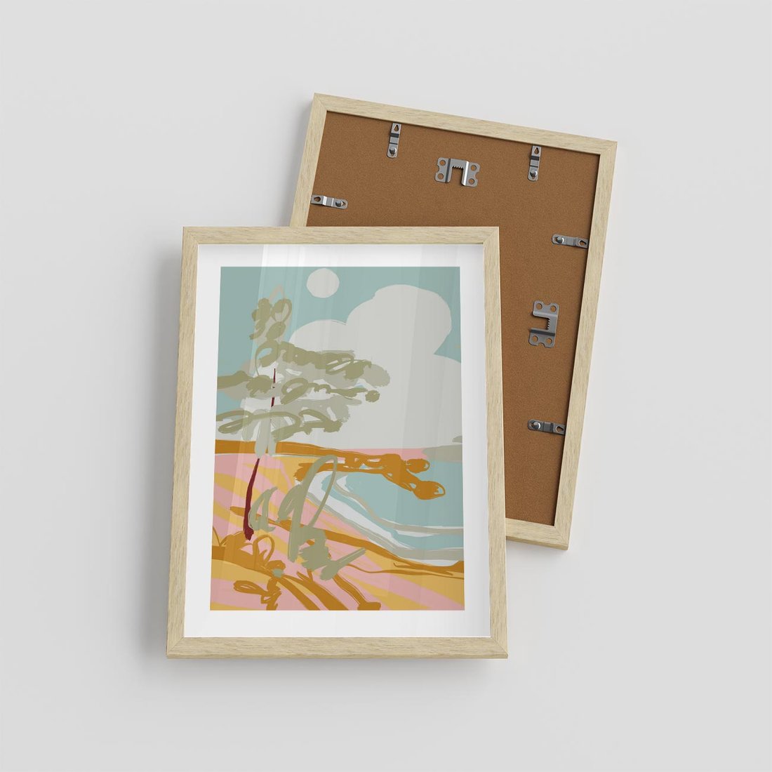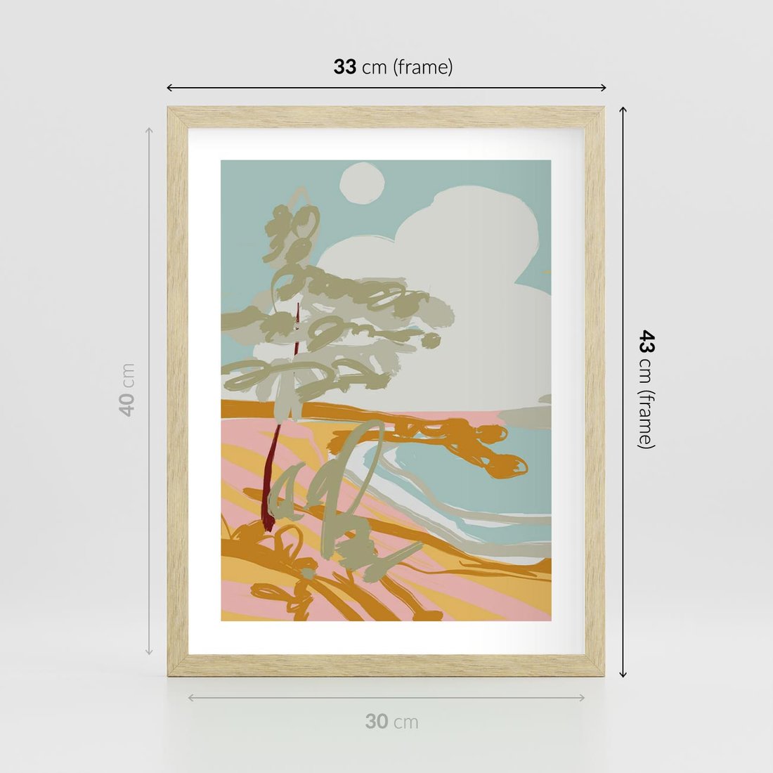 Plakat w ramie 30x40 - Spokojny Wiatr - pastelowy krajobraz, nowoczesny plakat - rama drewno