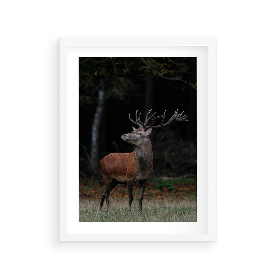 Plakat w ramie 30x40 - Spotkanie z naturą - jeleń, las - rama biała