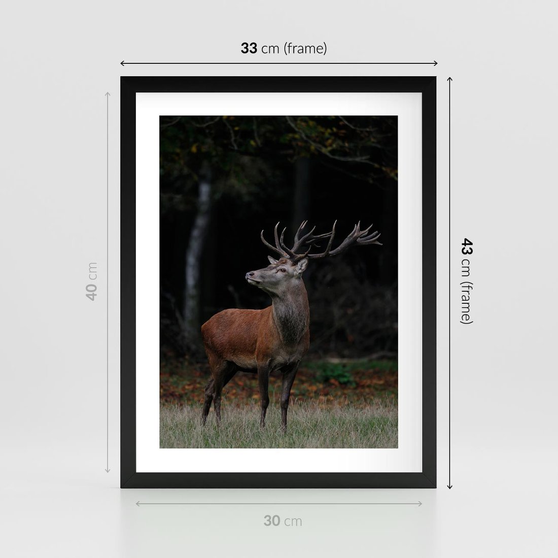 Plakat w ramie 30x40 - Spotkanie z naturą - jeleń, las - rama czarna