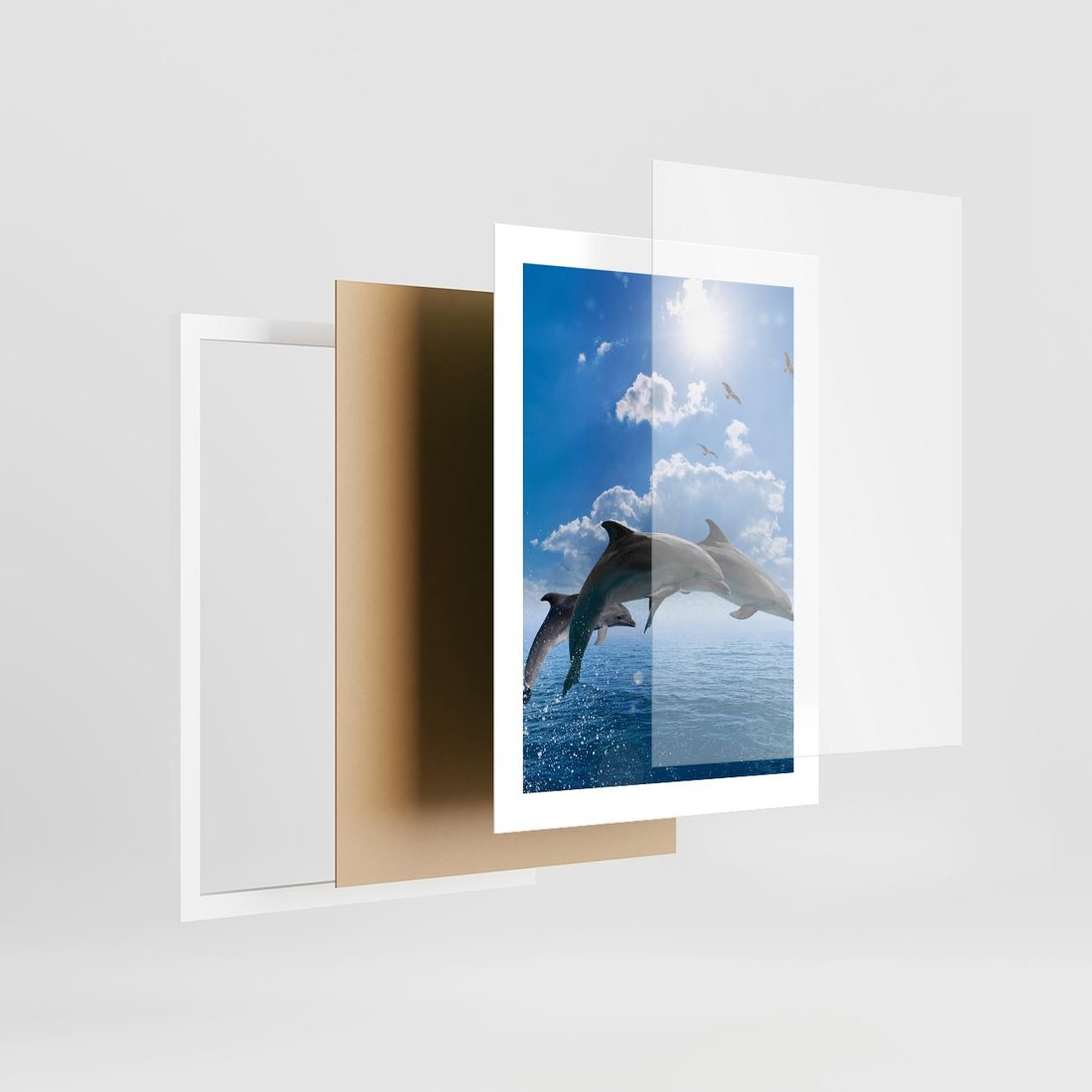 Plakat w ramie 30x40 - Spotkanie z naturą - morze, delfiny - rama biała