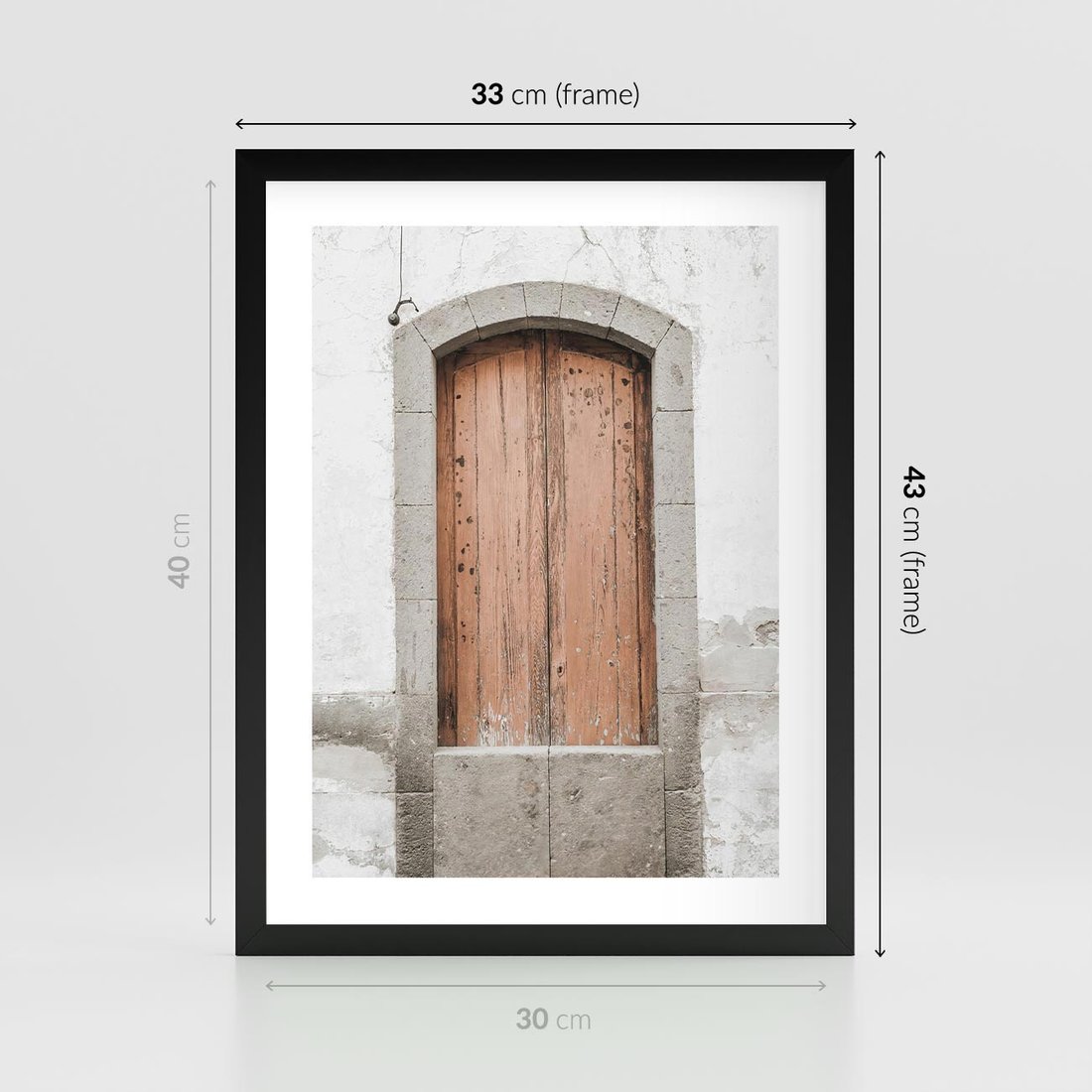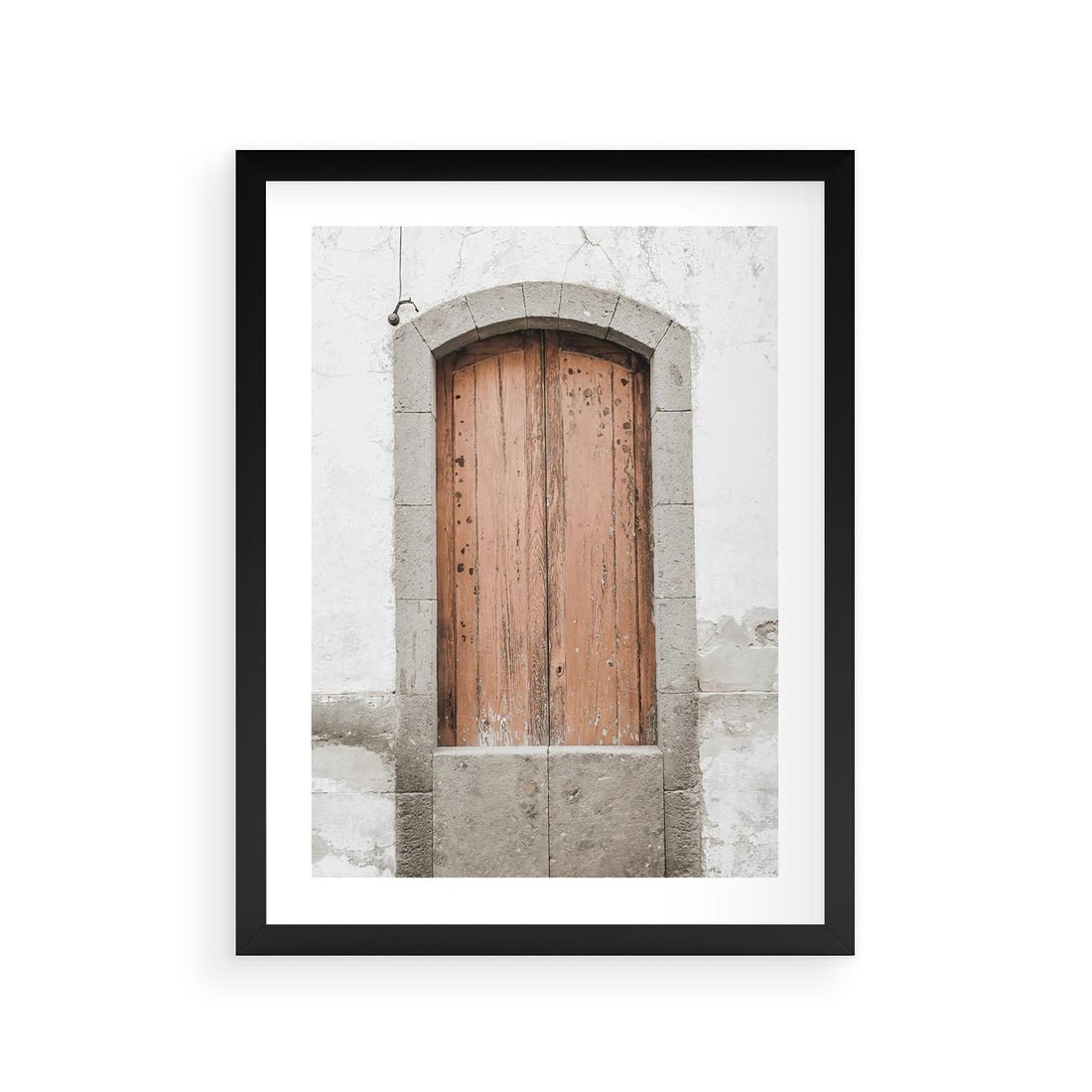 Plakat w ramie 30x40 - Śródziemnomorskie Drzwi Czasu - fotografia starych drzwi, śródziemnomorska architektura - rama czarna