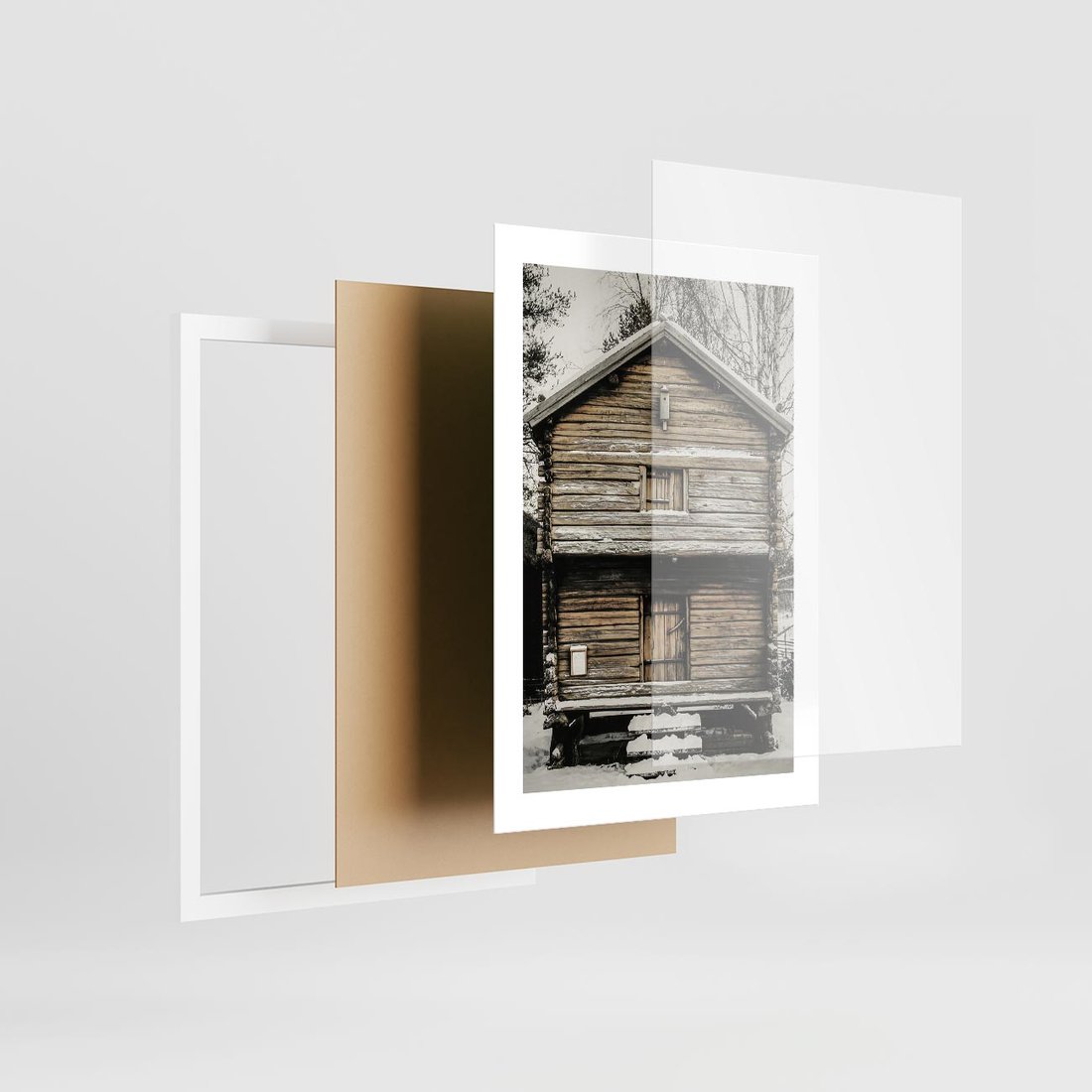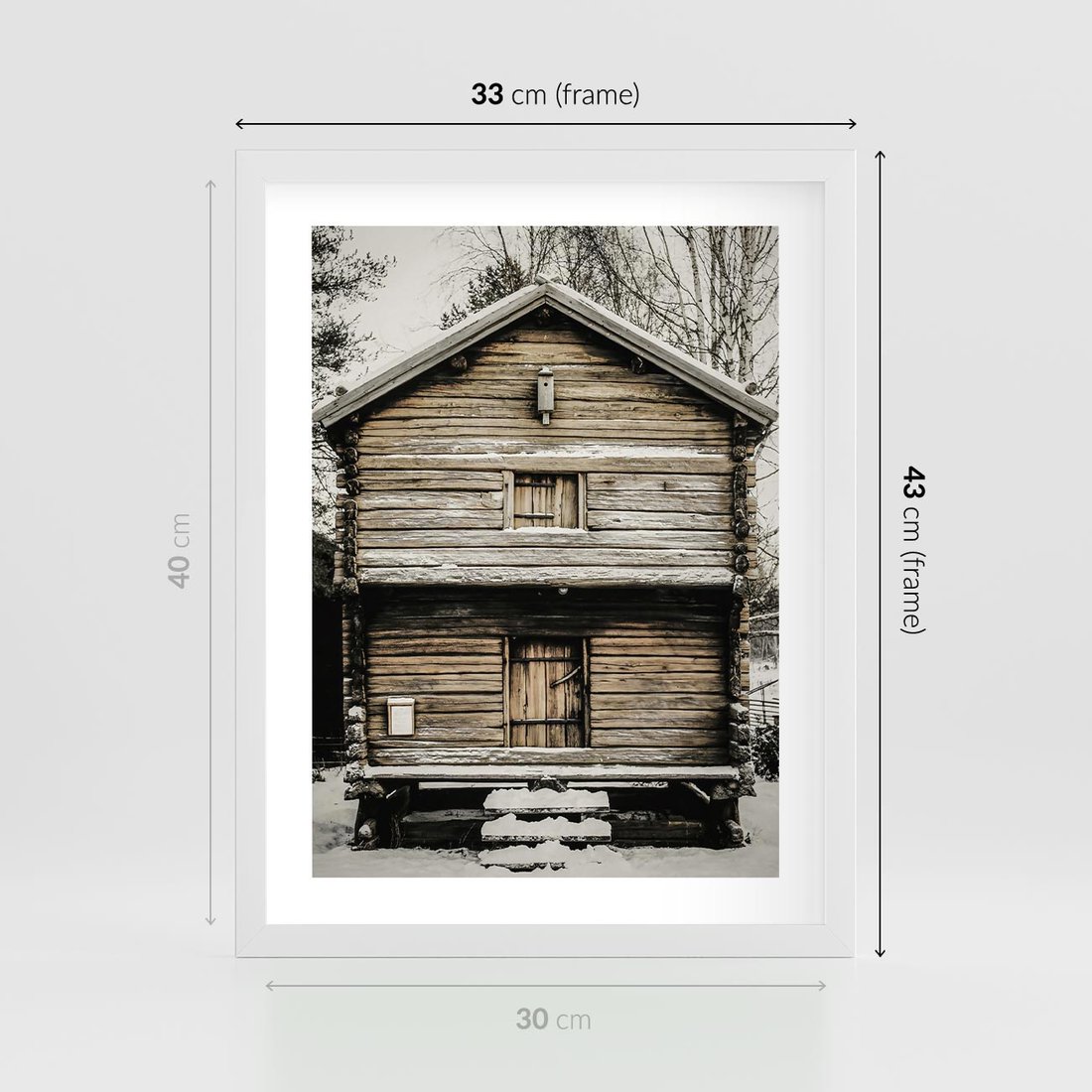 - Plakat w ramie 30x40 - Stary Drewniany Dom w Śniegu