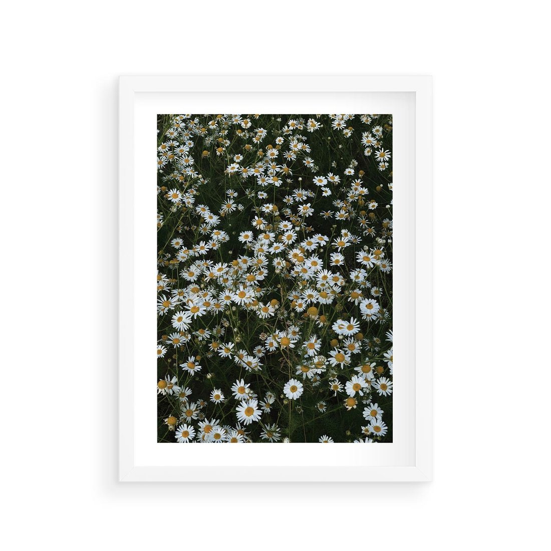 Plakat w ramie 30x40 - Stokrotkowa Idylla na Łące - łąka, stokrotki - rama biała