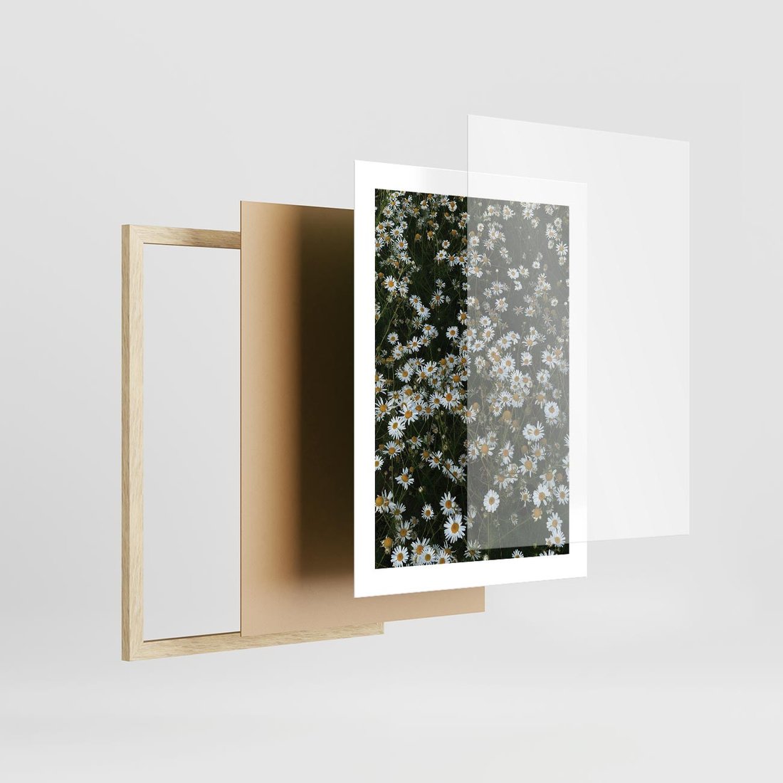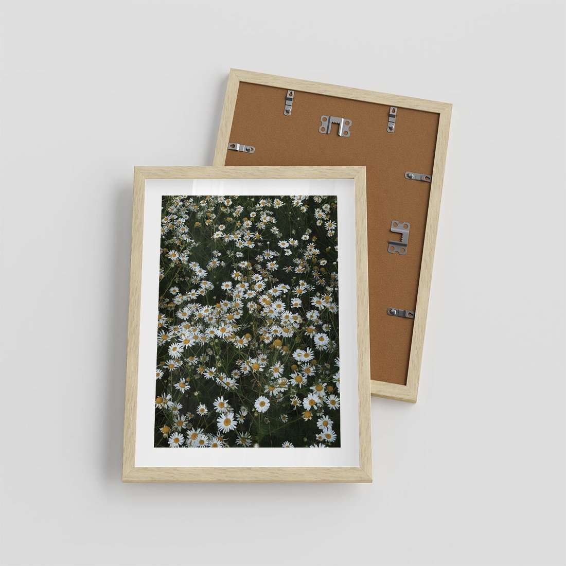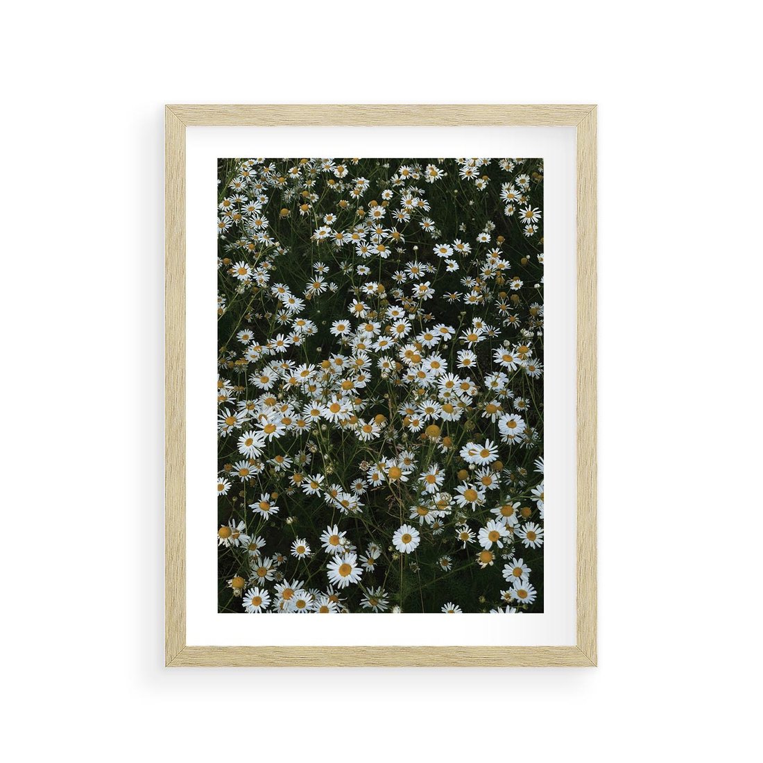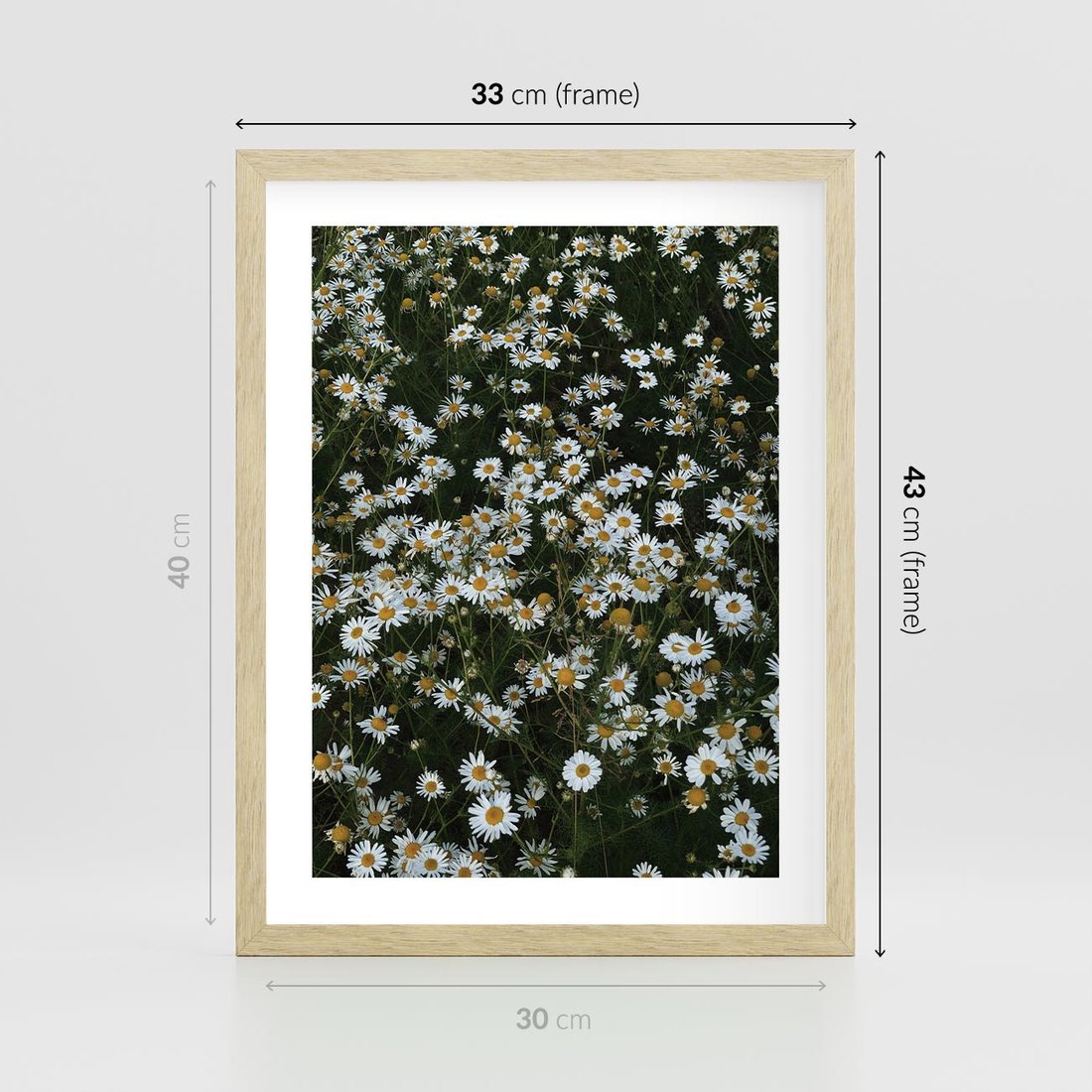 Plakat w ramie 30x40 - Stokrotkowa Idylla na Łące - łąka, stokrotki - rama drewno