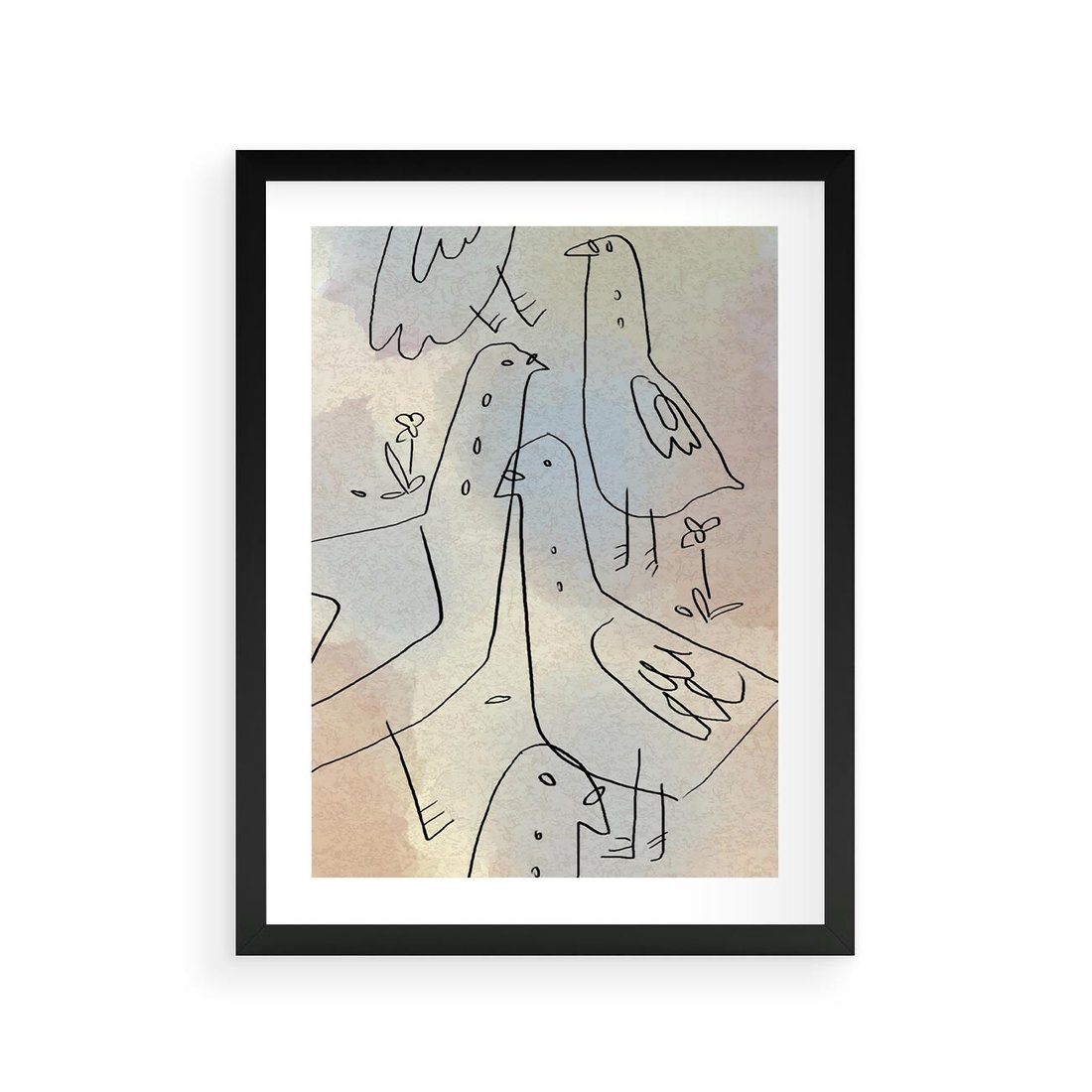 Plakat w ramie 30x40 - Strukturalna Gromada - abstrakcyjny plakat, szkic ptaków - rama czarna