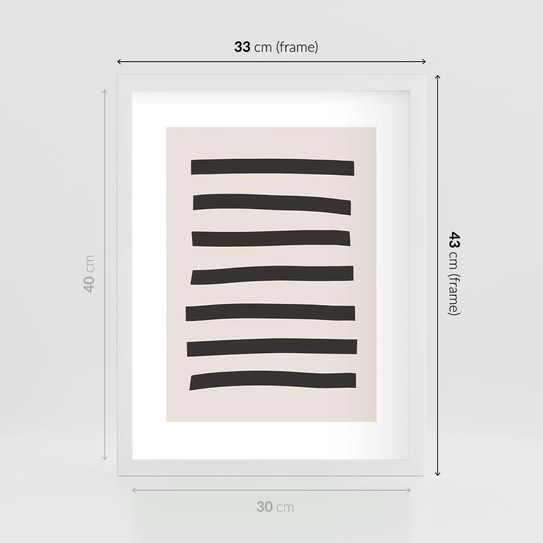 Plakat w ramie 30x40 - Strukturalna Rewolucja Form - minimalizm, czarne pasy - rama biała