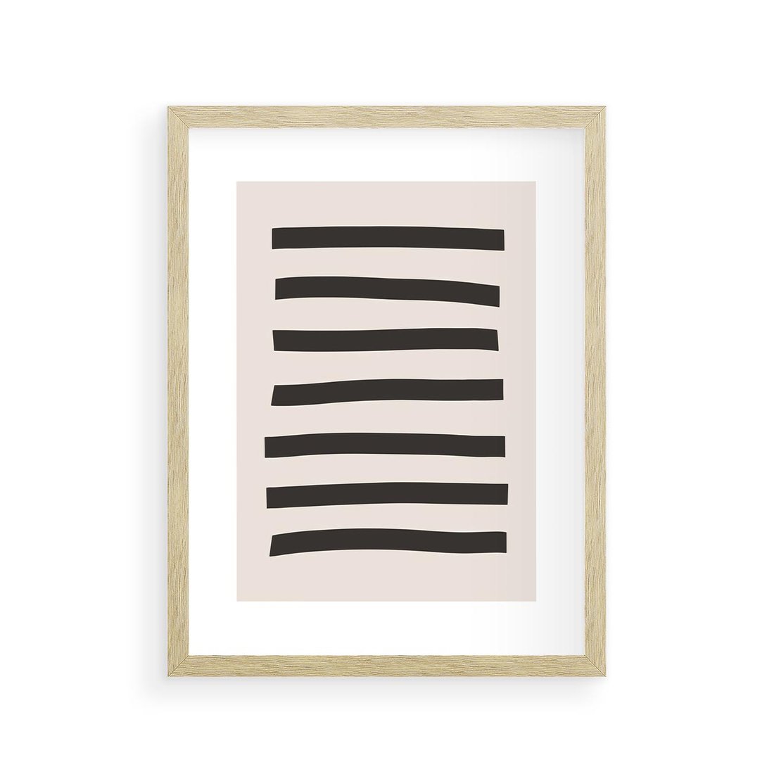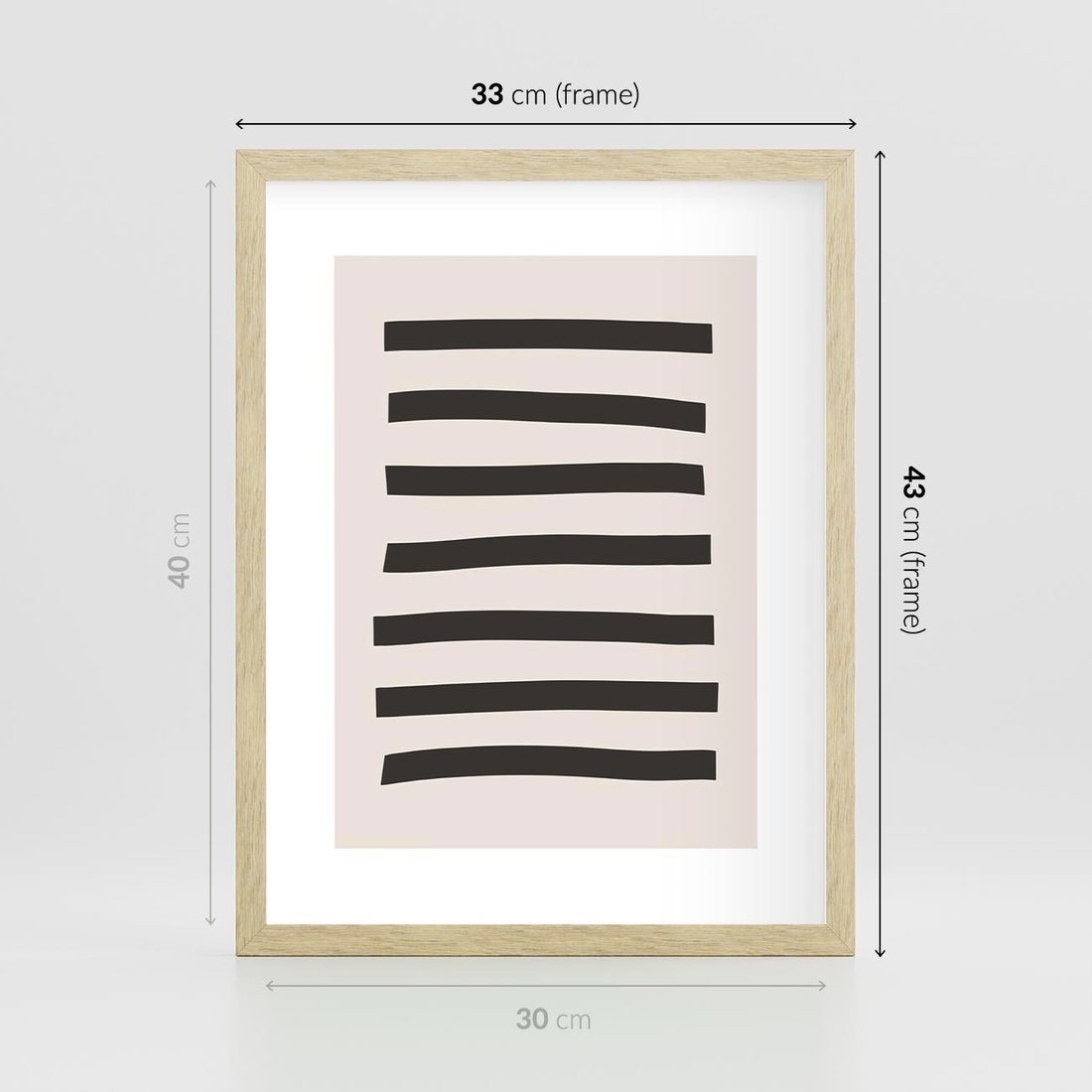 Plakat w ramie 30x40 - Strukturalna Rewolucja Form - minimalizm, czarne pasy - rama drewno