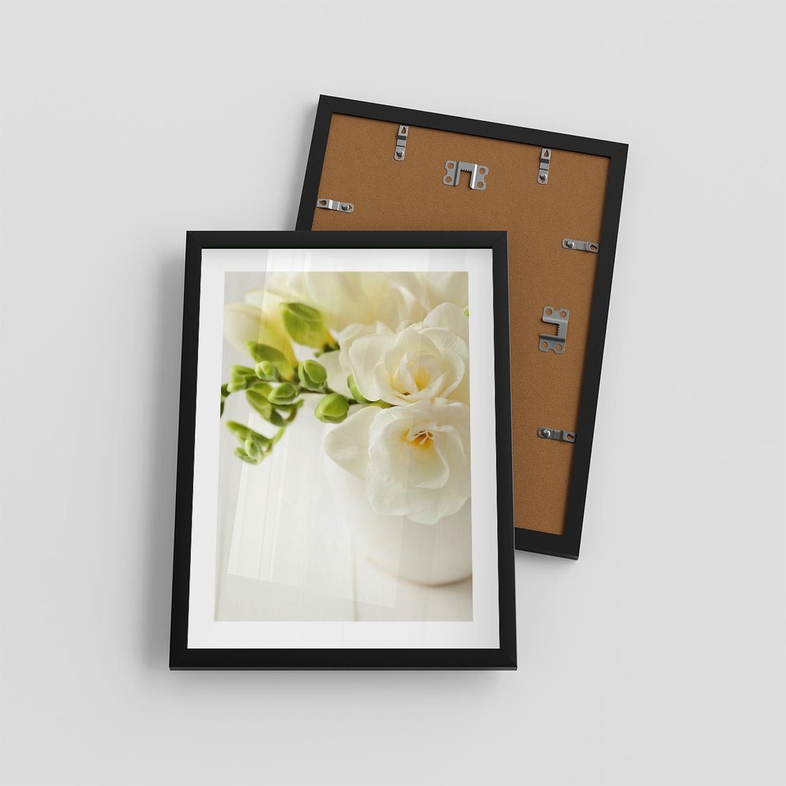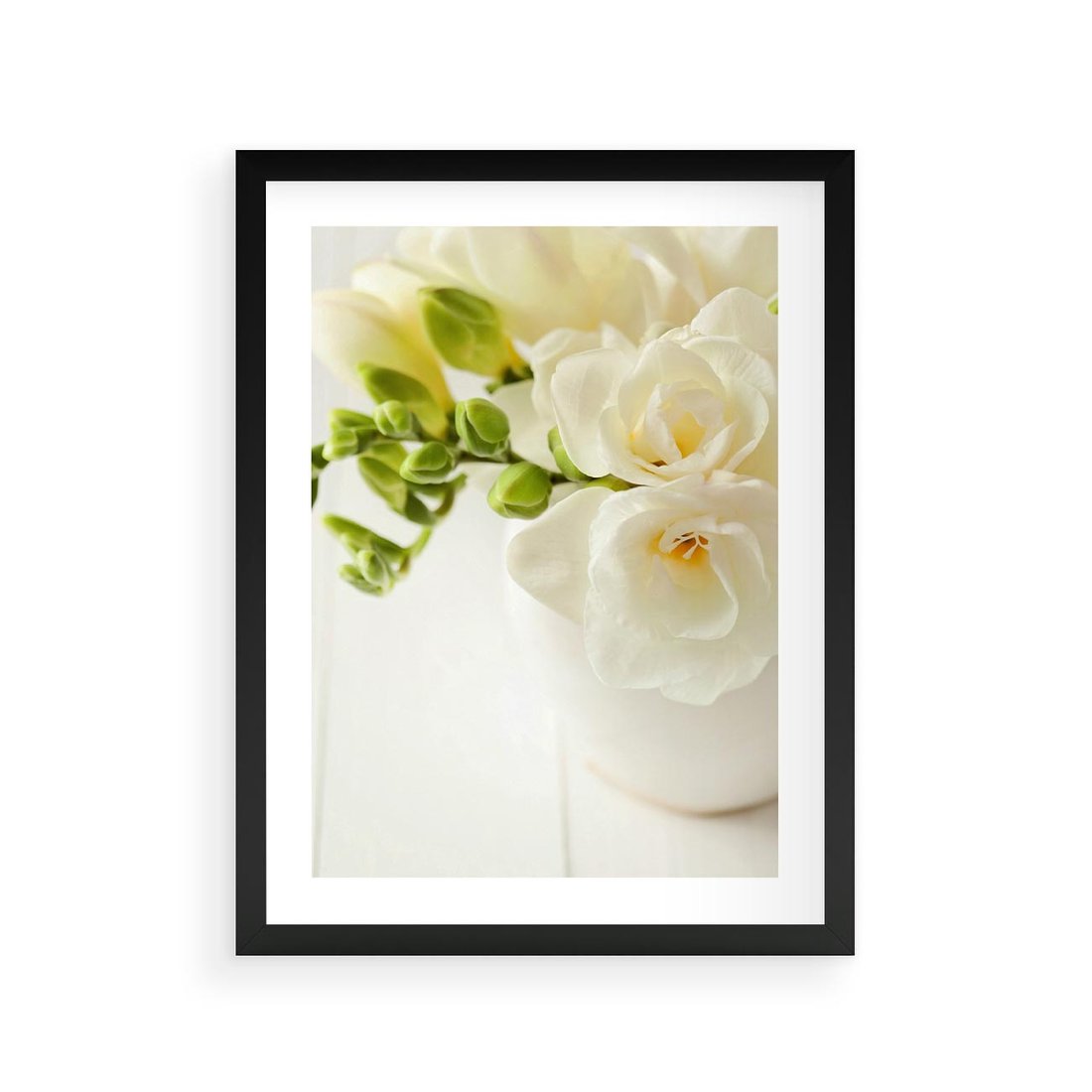 Plakat w ramie 30x40 - Subtelność białych frezji - frezja, białe - rama czarna