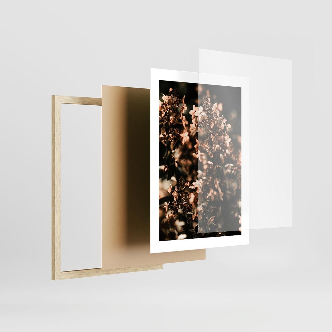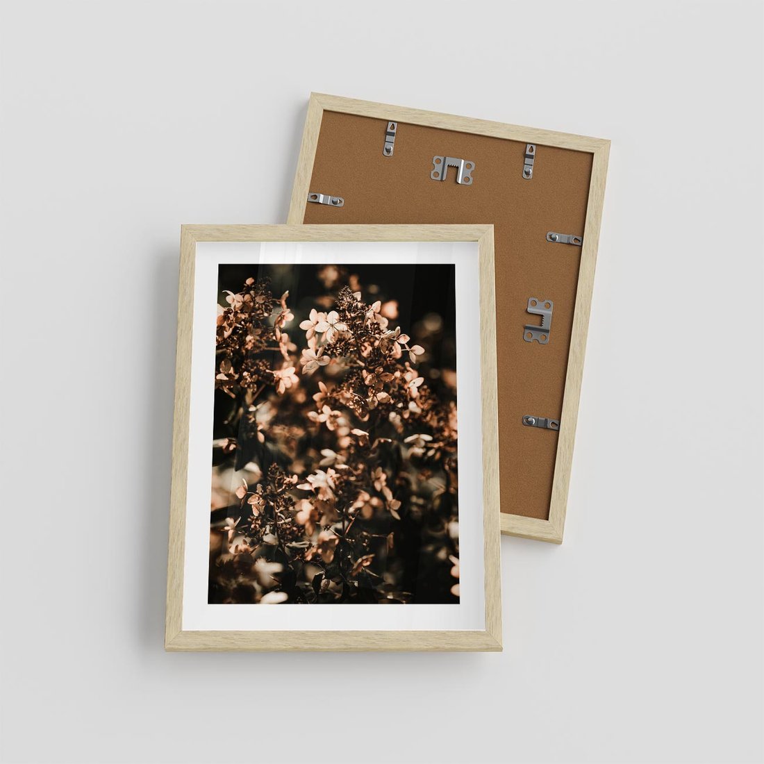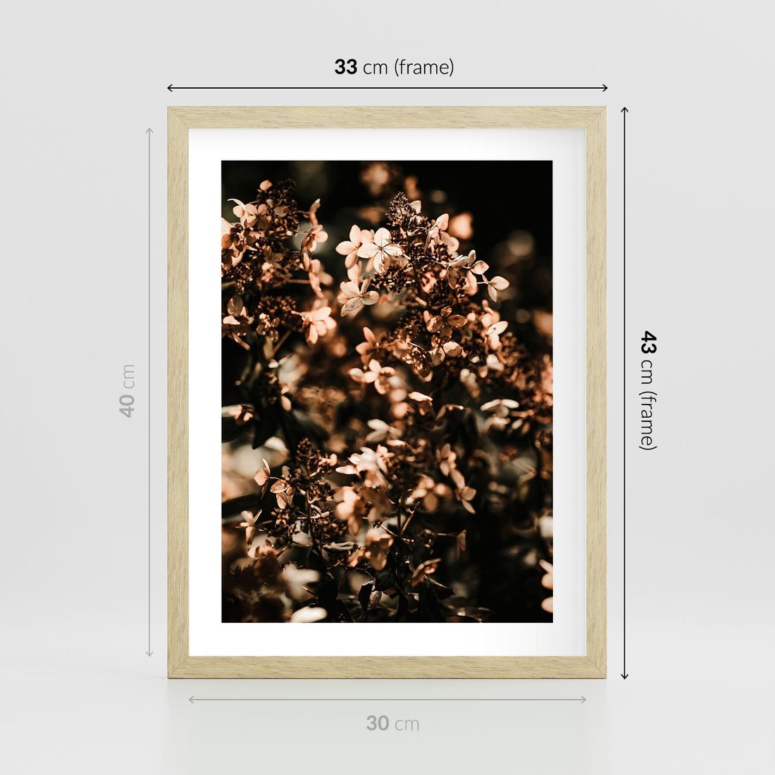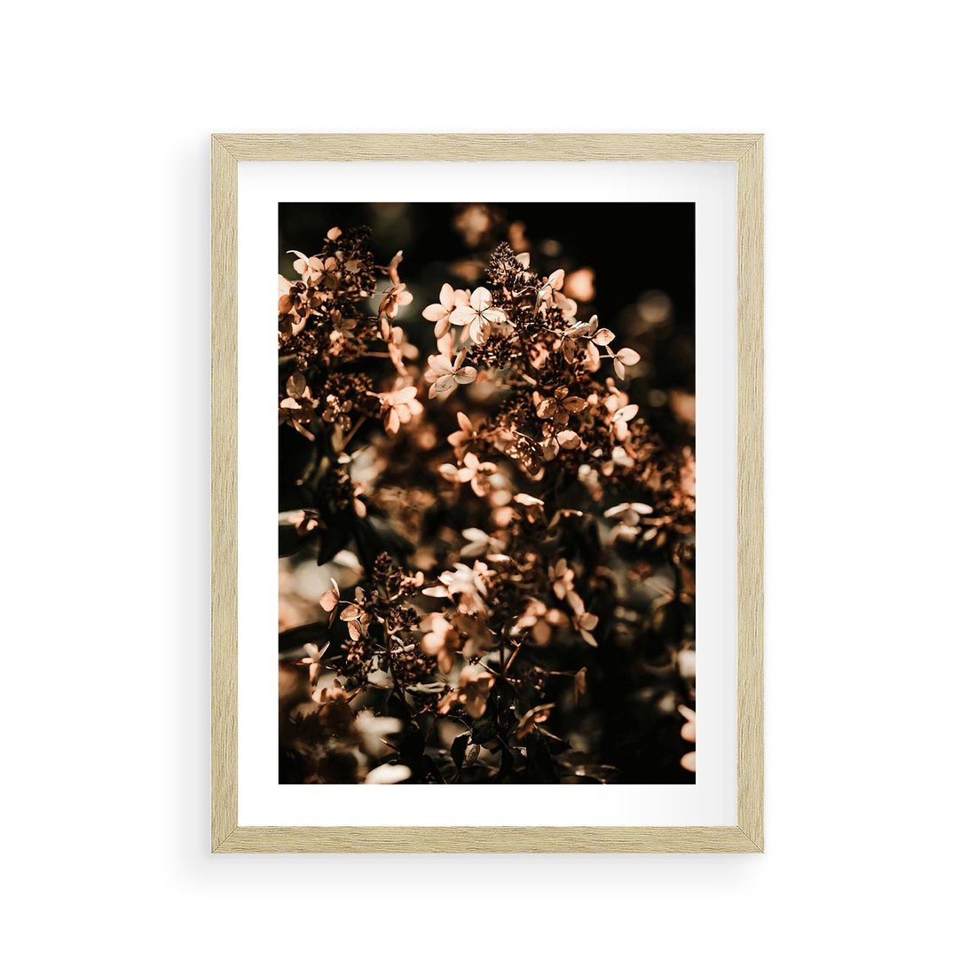 Plakat w ramie 30x40 - Sucha Kompozycja Kwiatów - suche kwiaty hortensji - rama drewno