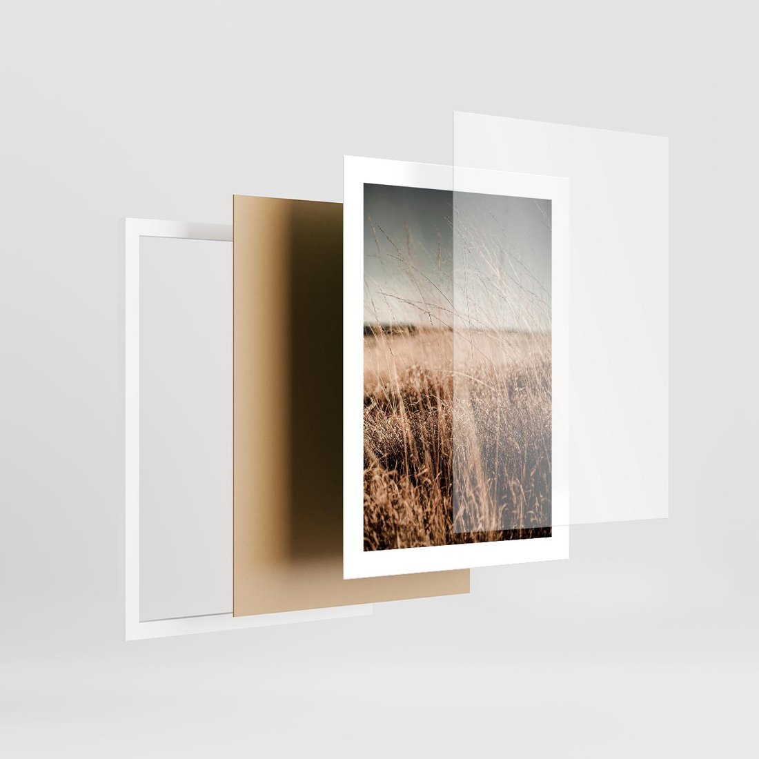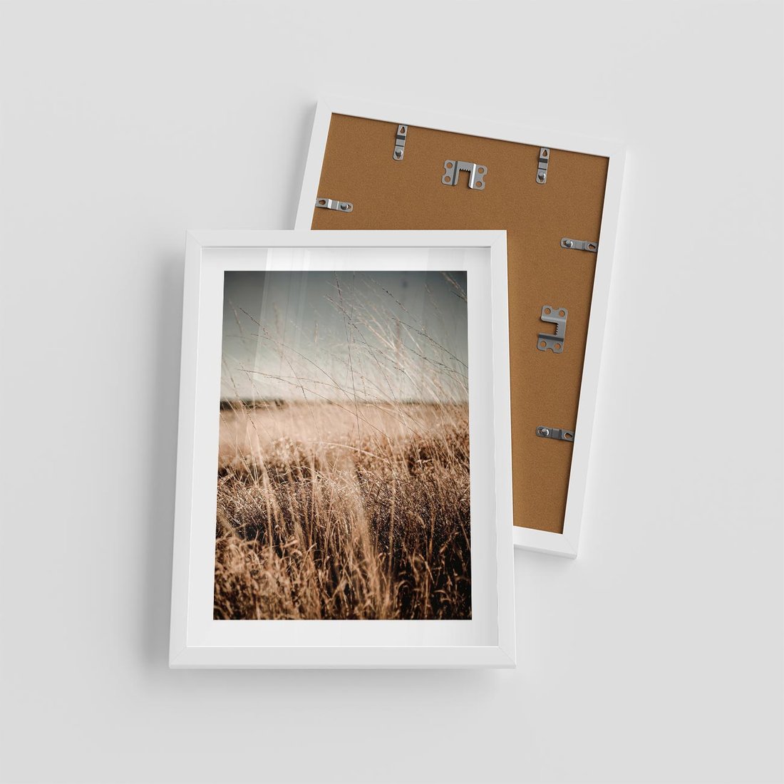 Plakat w ramie 30x40 - Sucha Trawa w Odcieniach Sepii - suche trawy, łąka odcienie beżu - rama biała