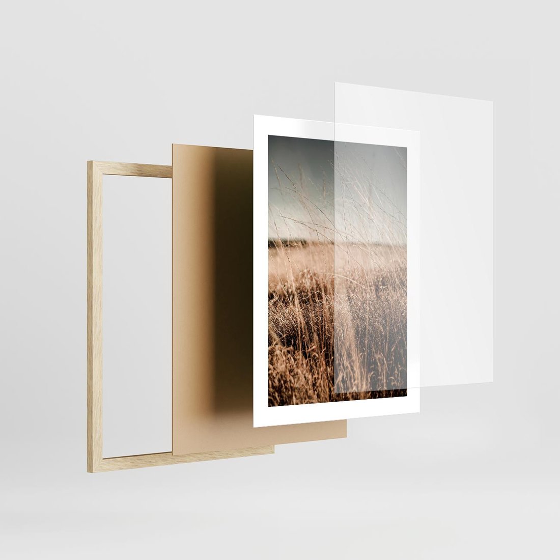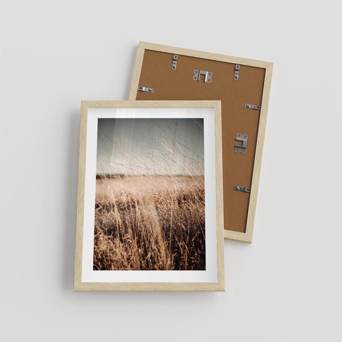 Plakat w ramie 30x40 - Sucha Trawa w Odcieniach Sepii - suche trawy, łąka odcienie beżu - rama drewno