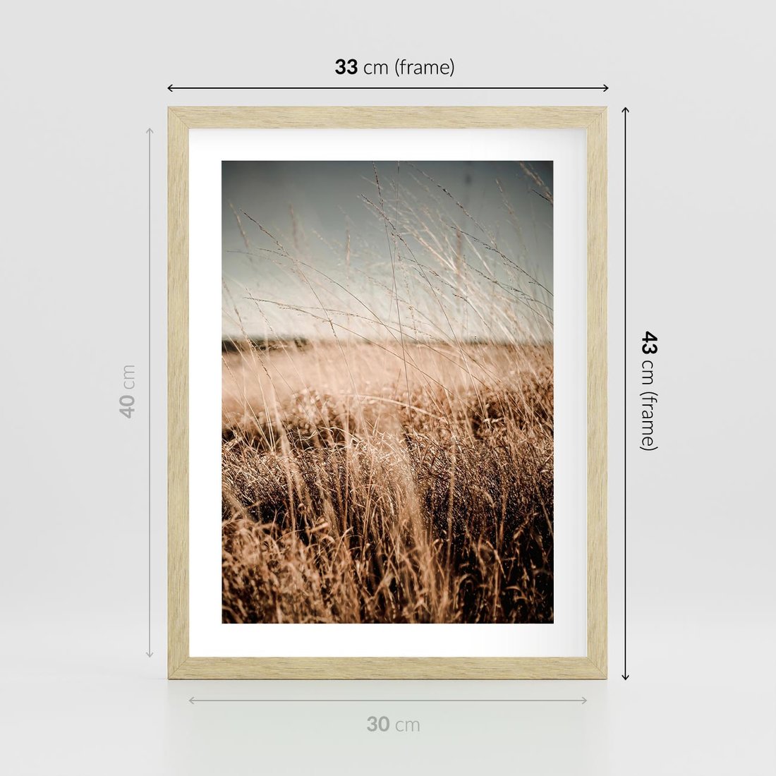 - Plakat w ramie 30x40 - Sucha Trawa w Odcieniach Sepii