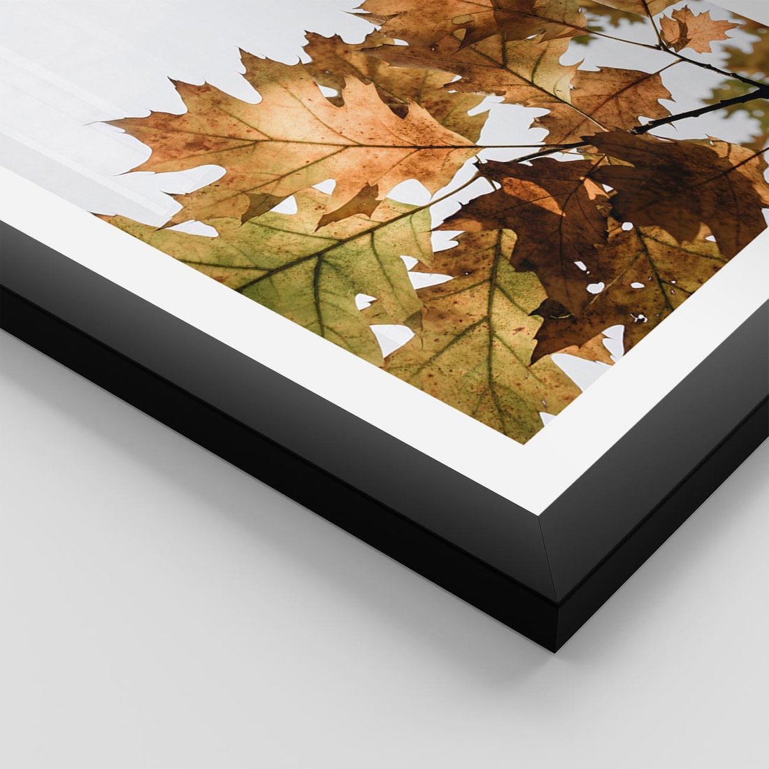 Plakat w ramie 30x40 - Suche Żółte Liście w Malowniczym Ujęciu - liście, żółte - rama czarna