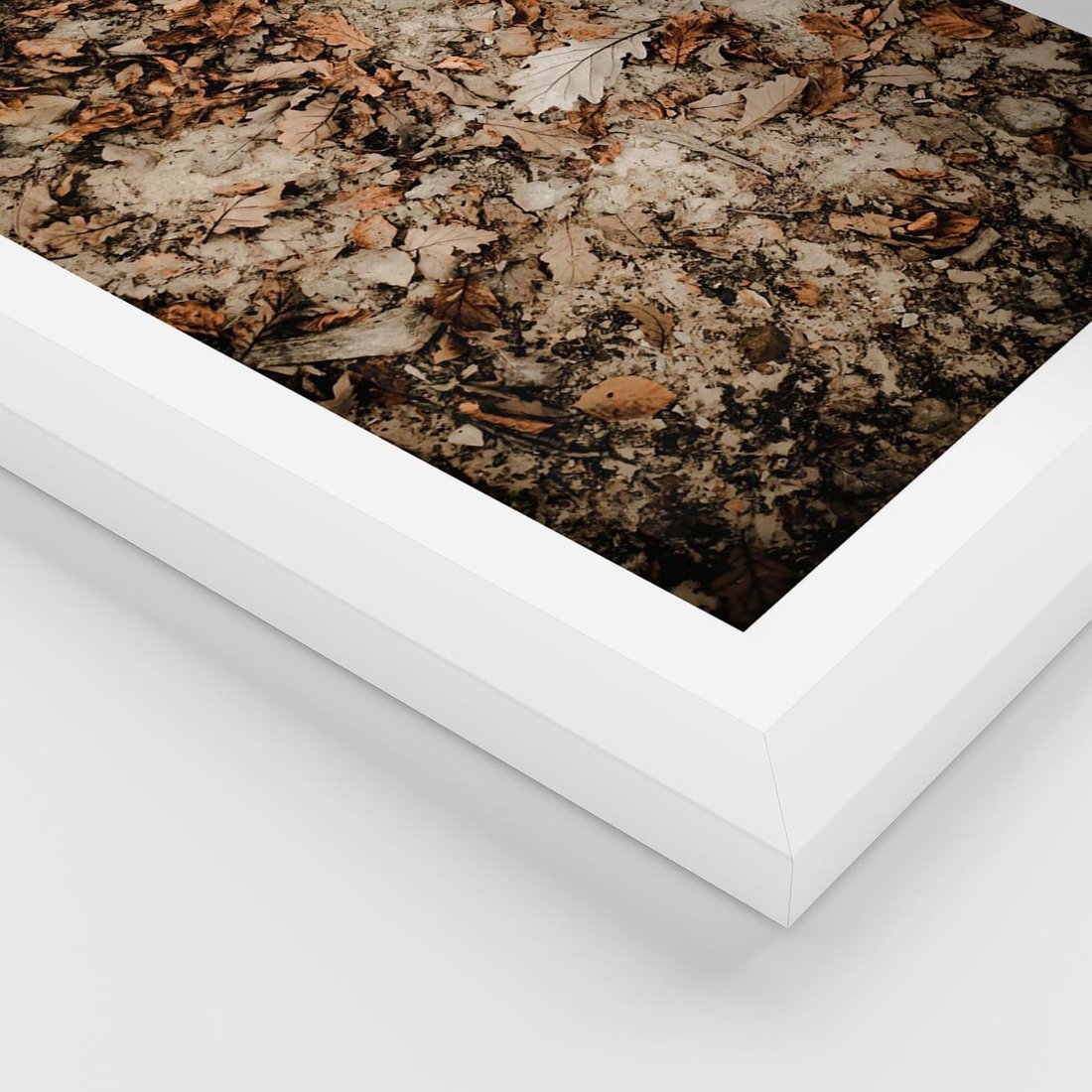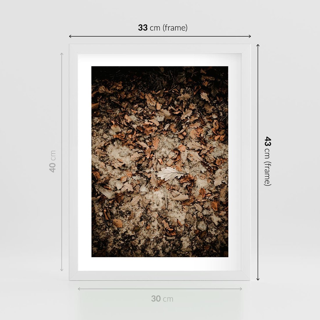 Plakat w ramie 30x40 - Suchość Liści w Brązowych Tonach - suche liście jesień brąz - rama biała