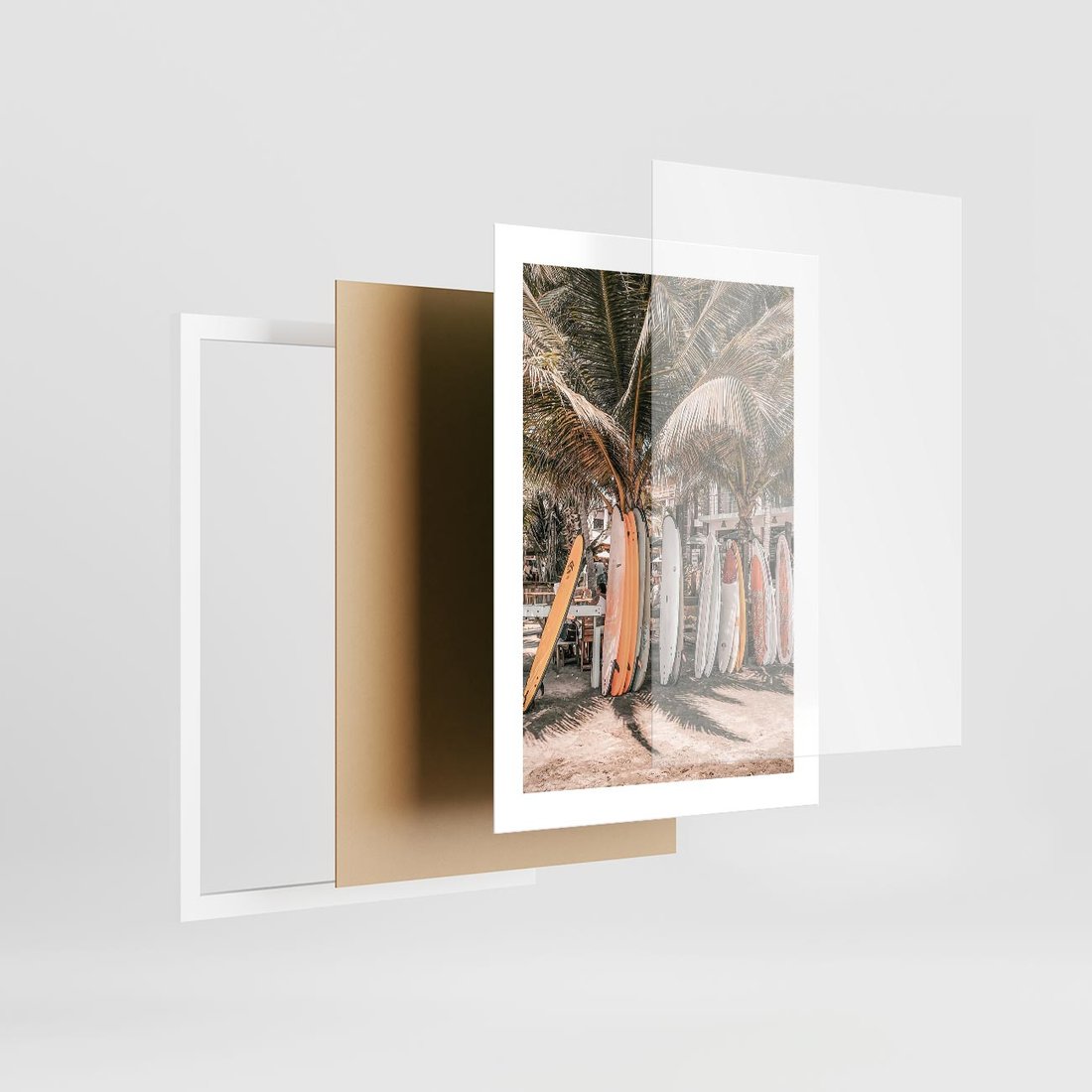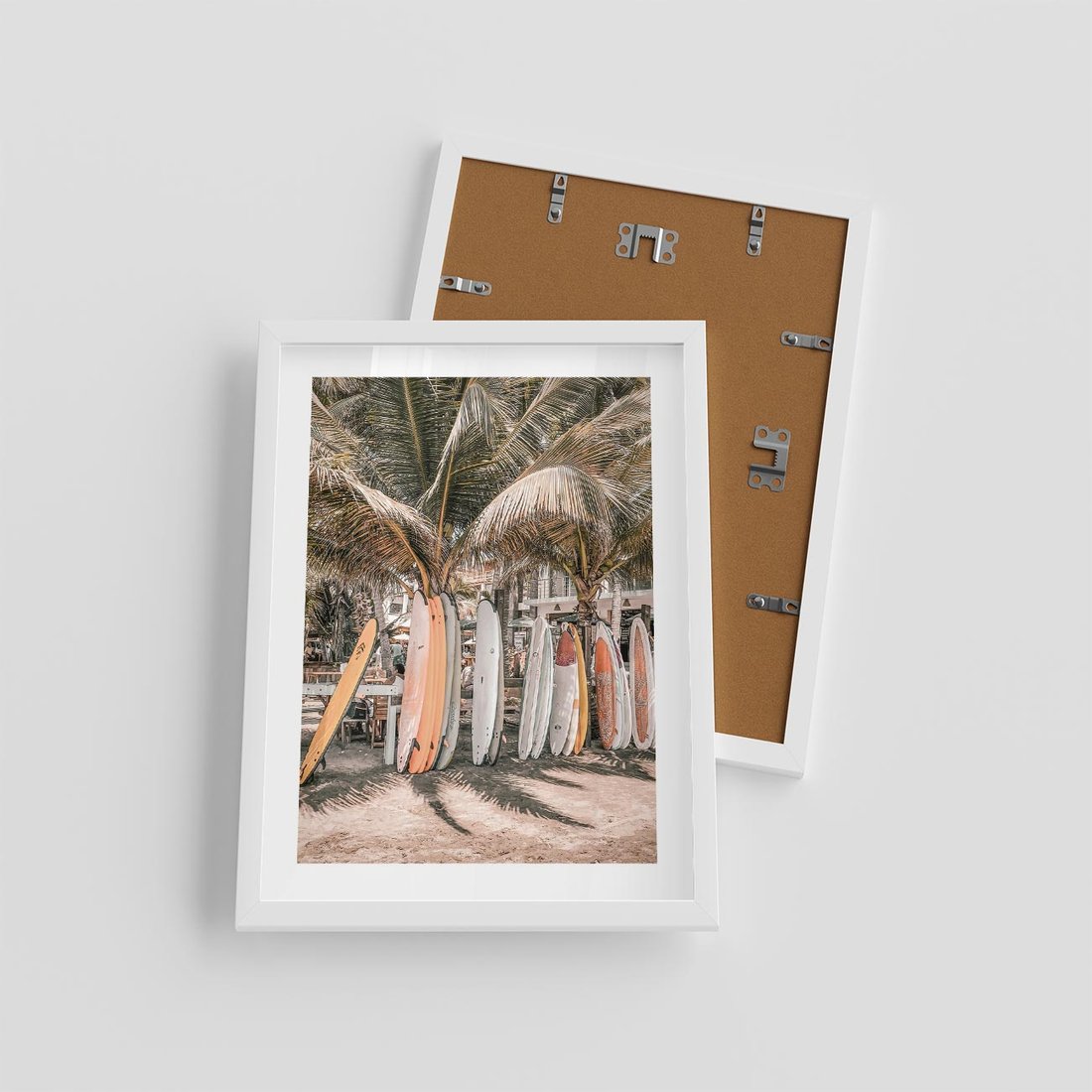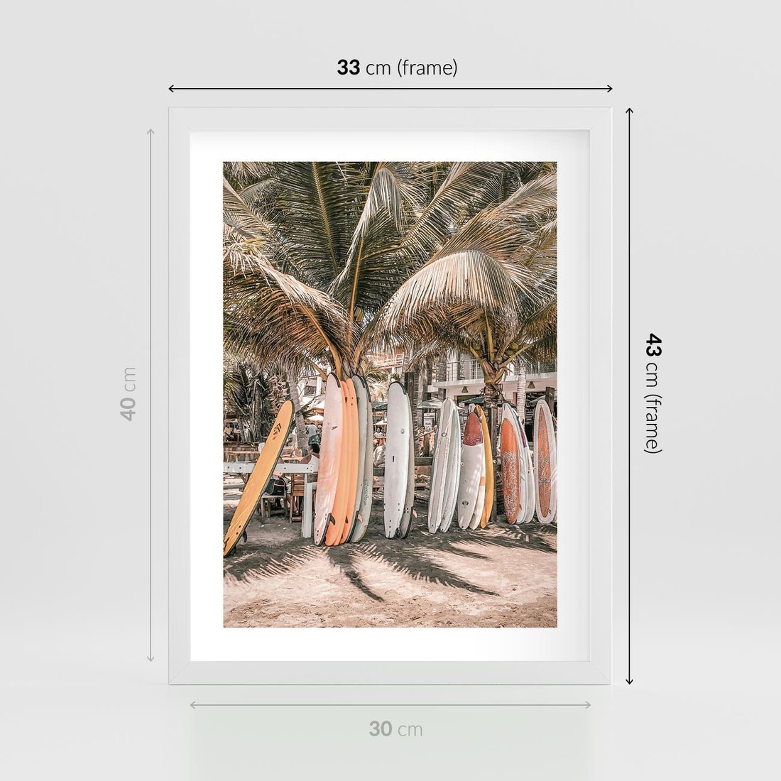 Plakat w ramie 30x40 - Surfingowy Raj - deski surfingowe, na plaży - rama biała