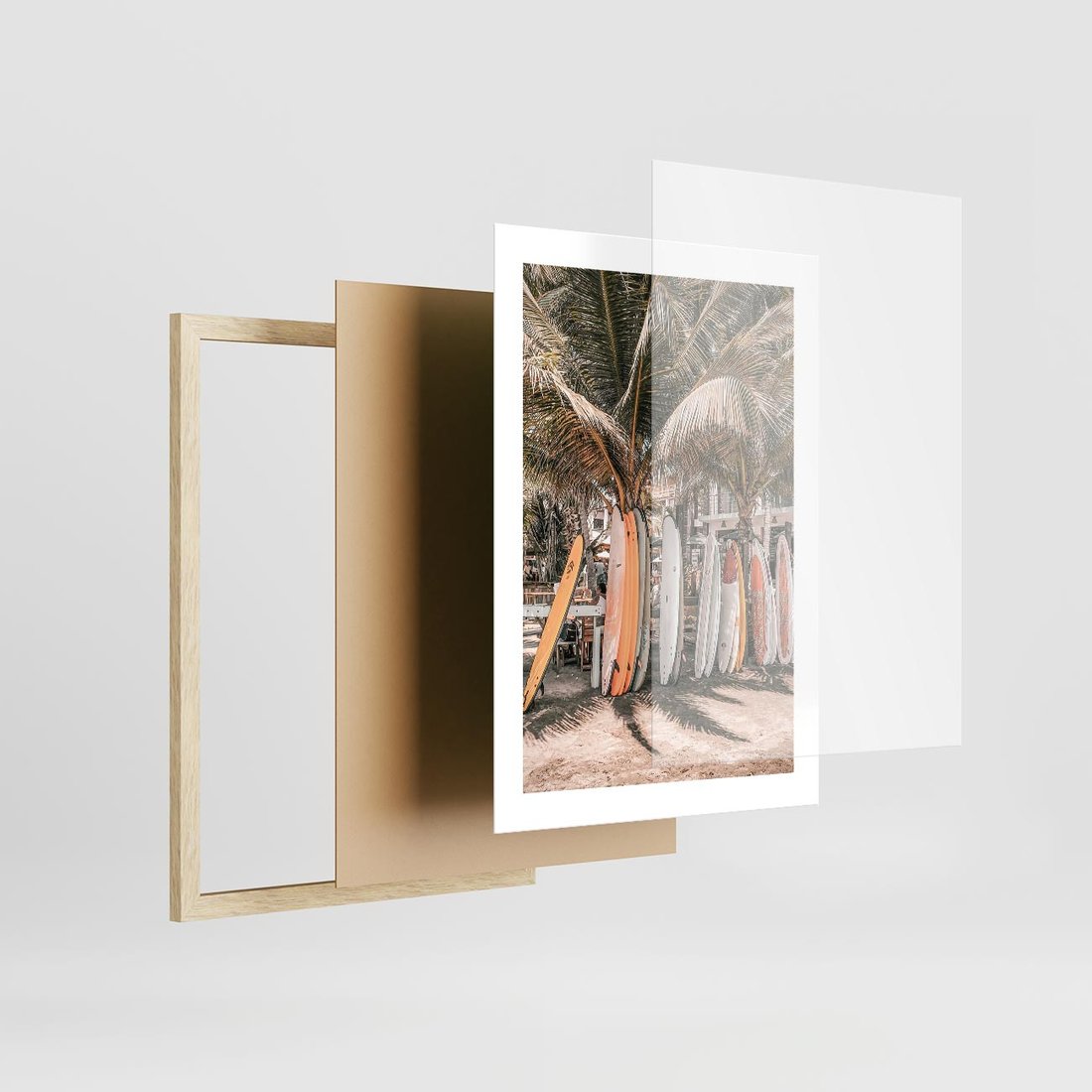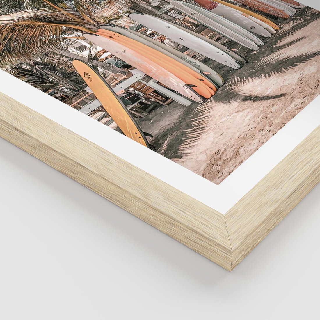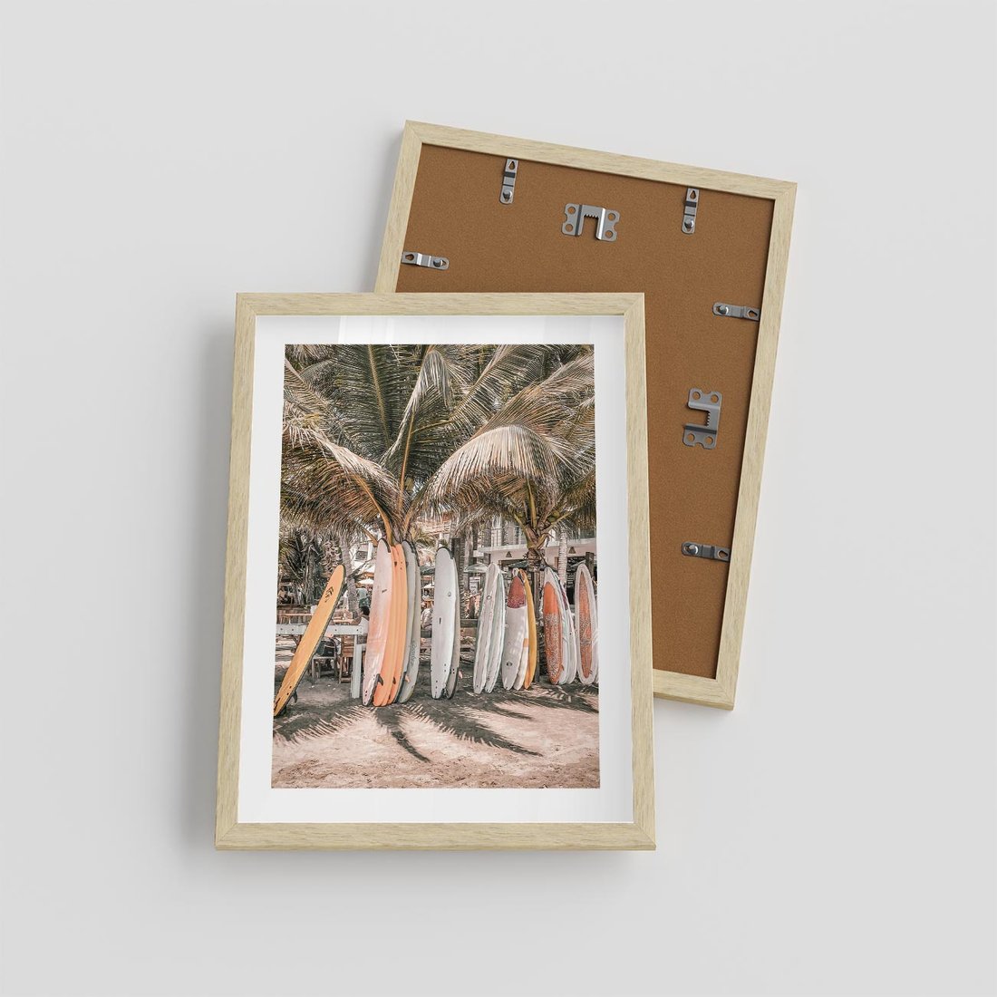 Plakat w ramie 30x40 - Surfingowy Raj - deski surfingowe, na plaży - rama drewno