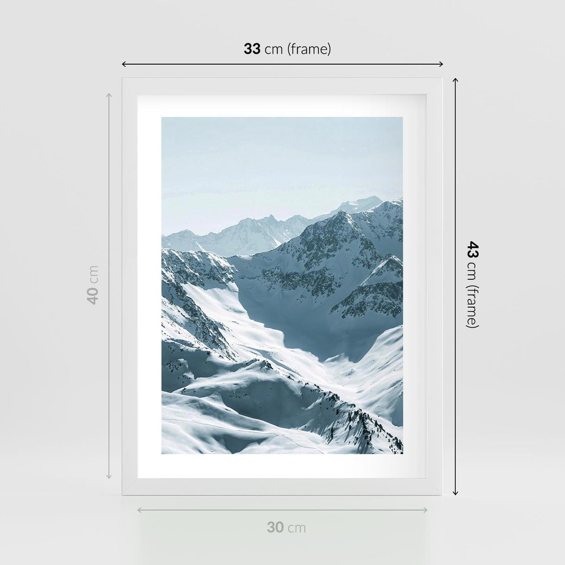Plakat w ramie 30x40 - Surowość Gór - górskie szczyty, śnieg - rama biała