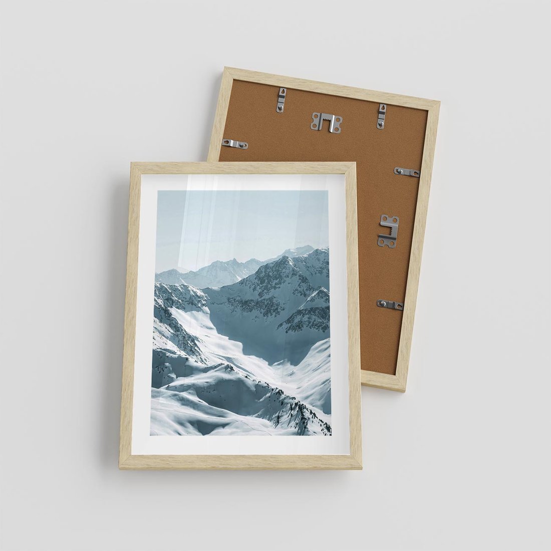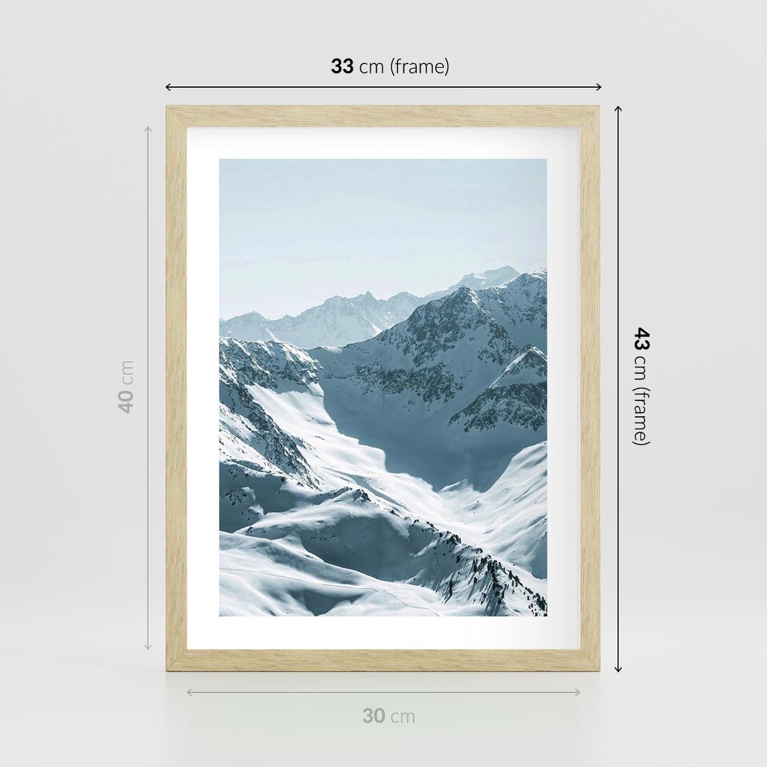Plakat w ramie 30x40 - Surowość Gór - górskie szczyty, śnieg - rama drewno