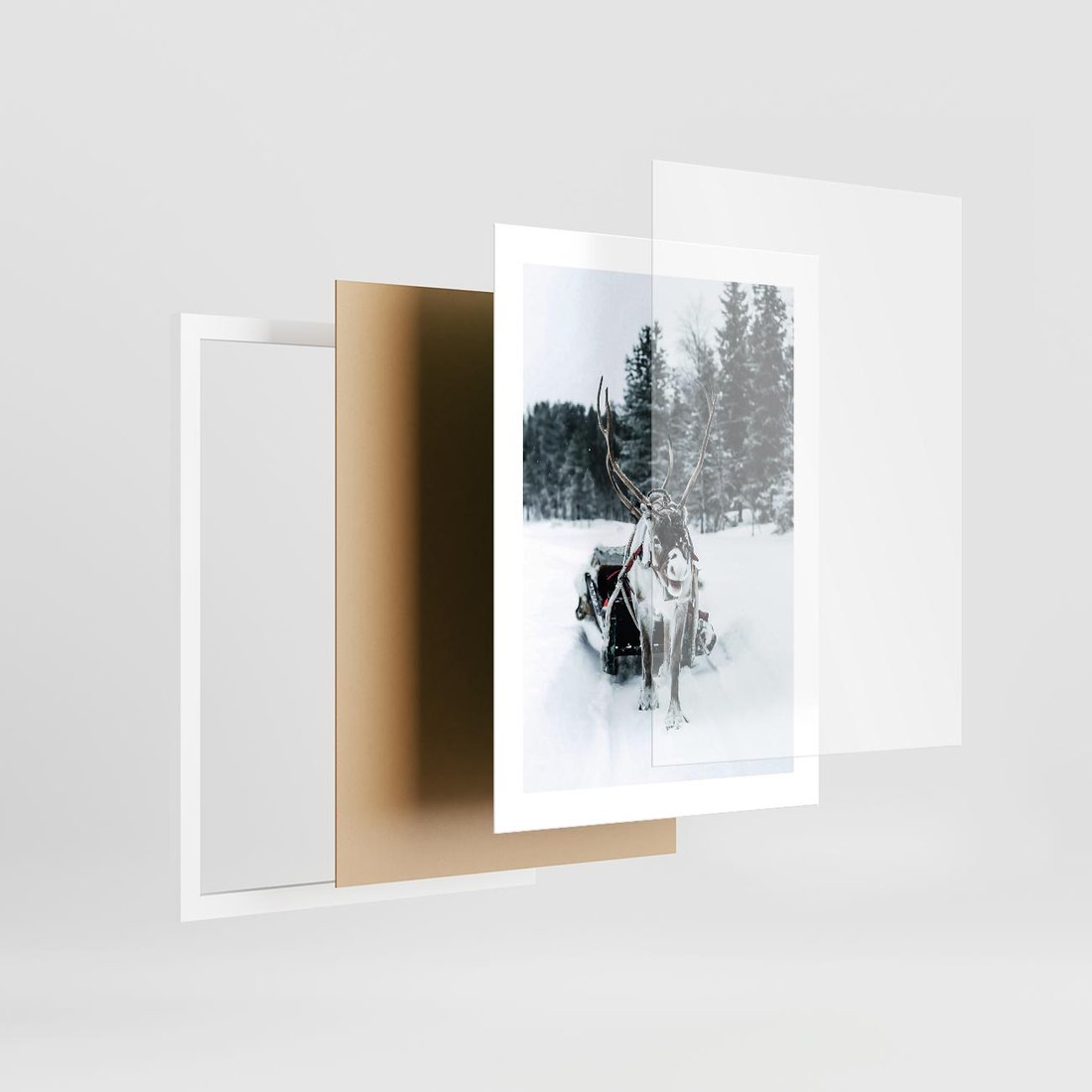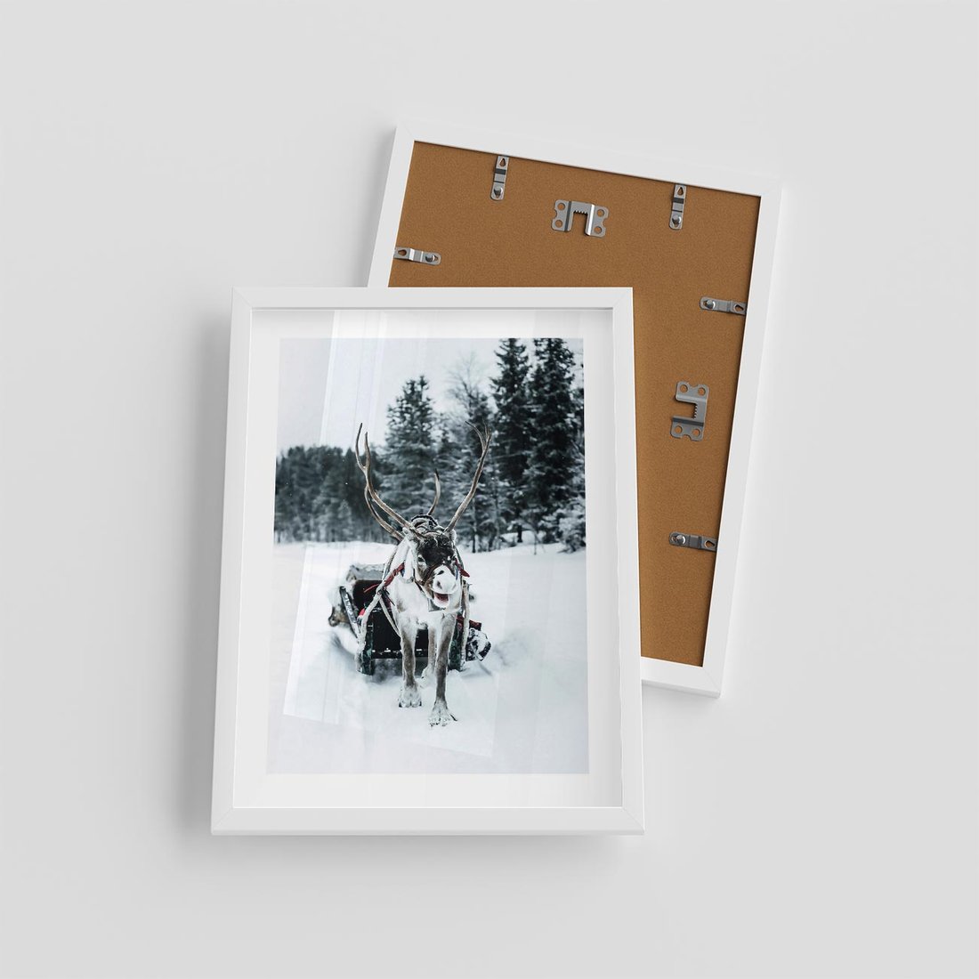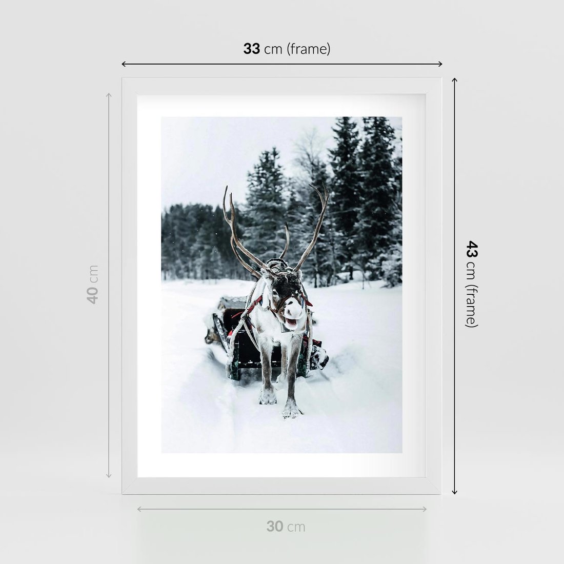 Plakat w ramie 30x40 - Świąteczna Przygoda - renifer, śnieg - rama biała