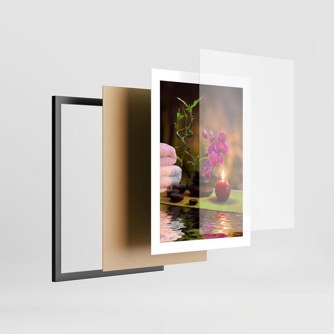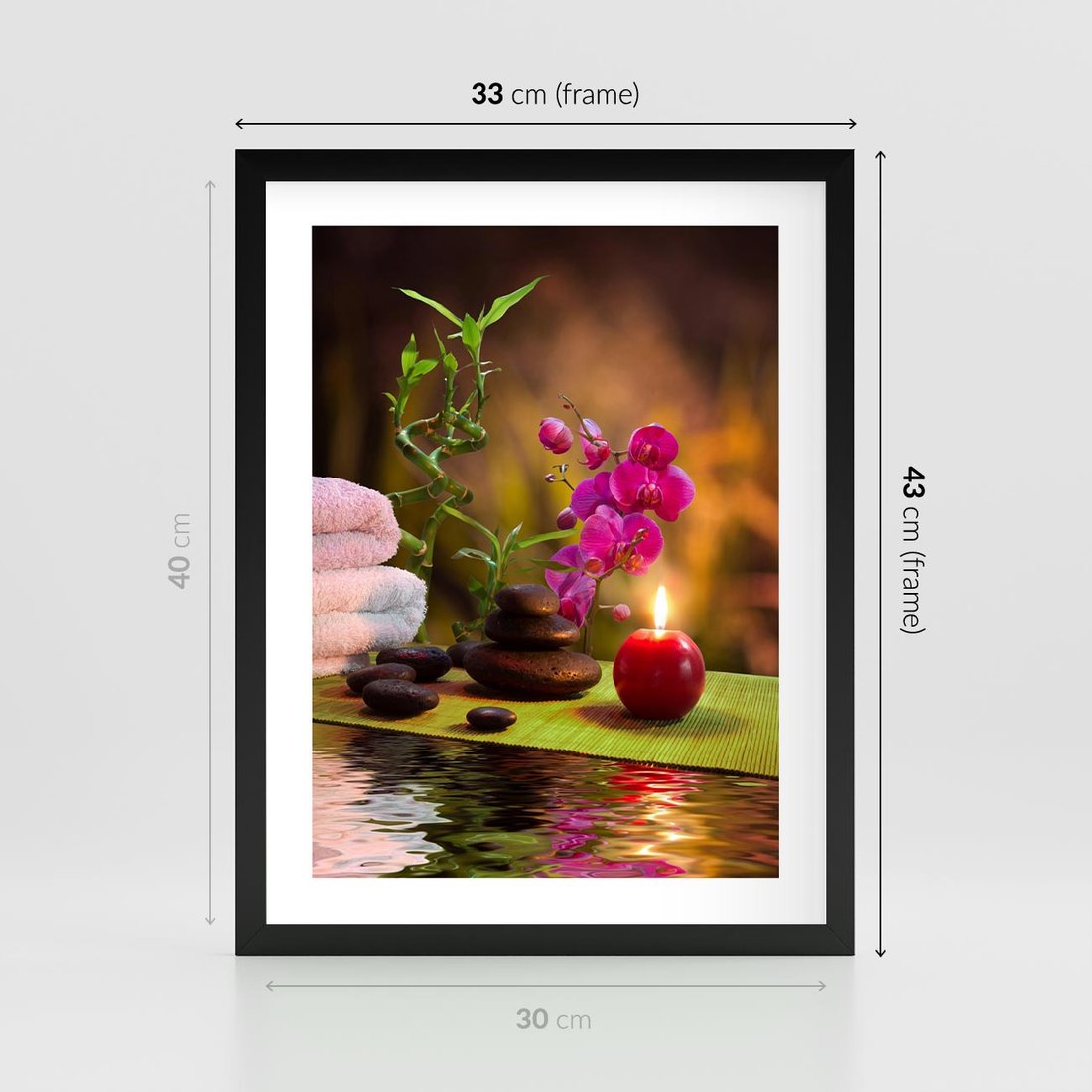 Plakat w ramie 30x40 - Światło Świecących Kwiatów w Spa - spa, świaca - rama czarna